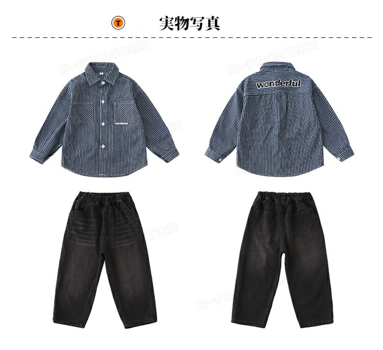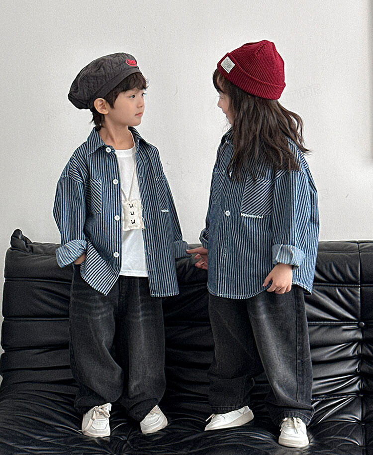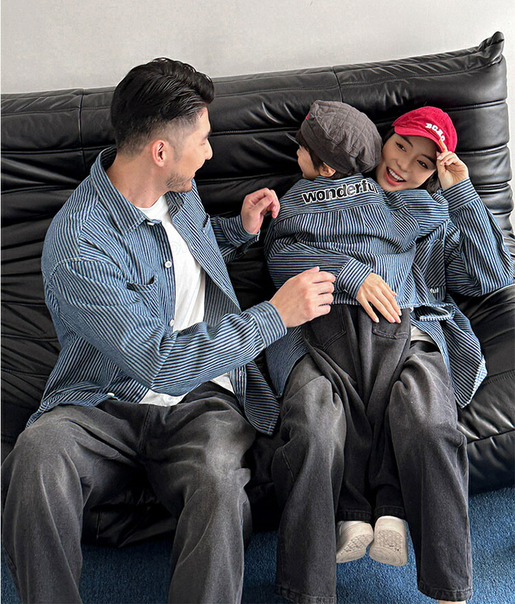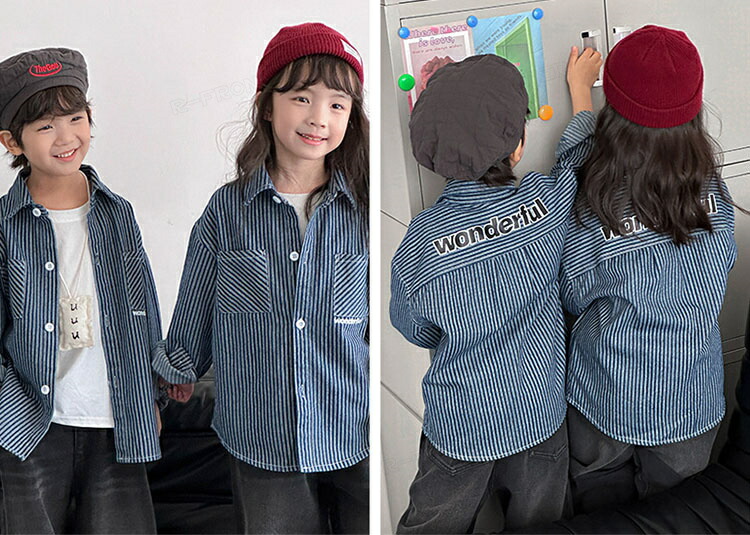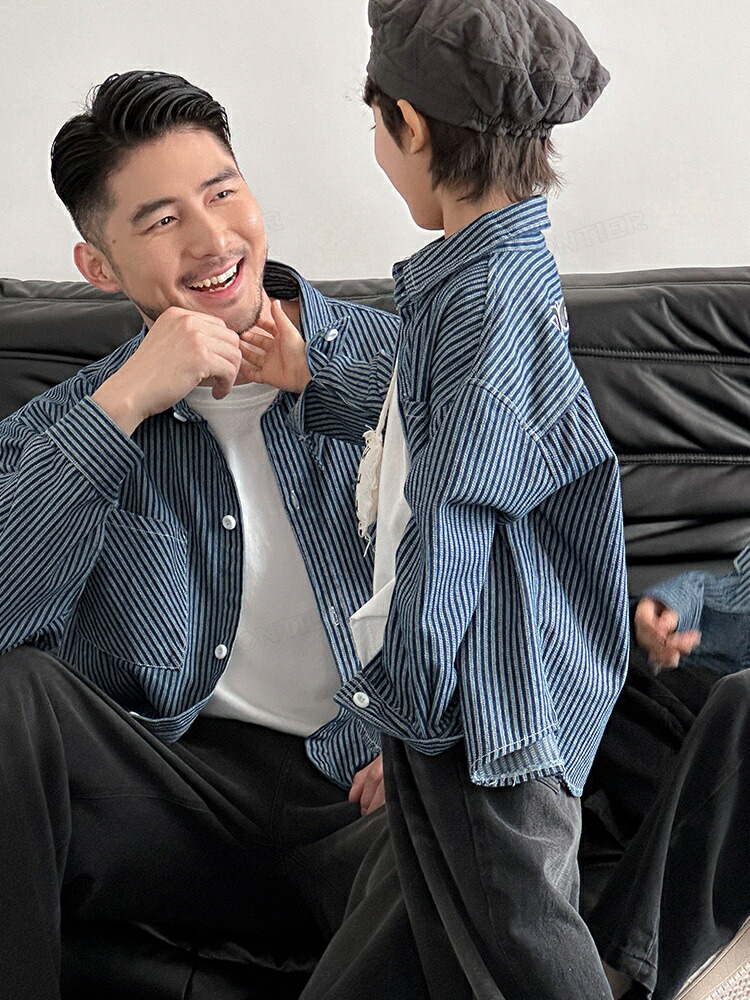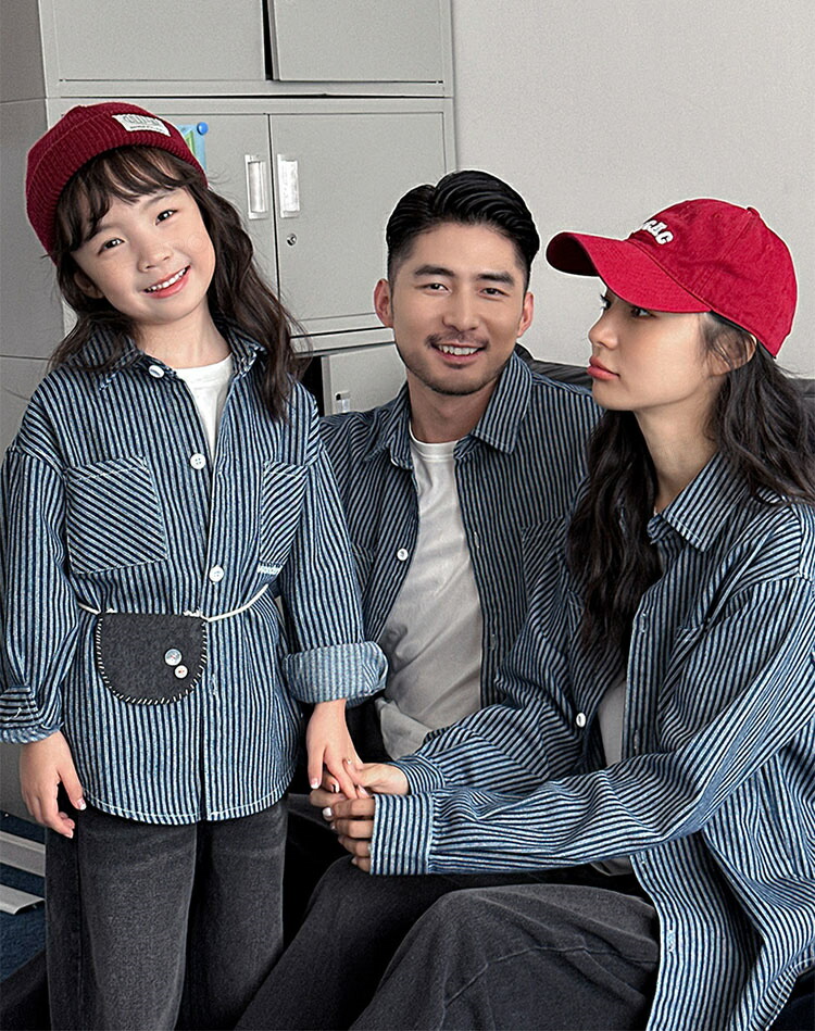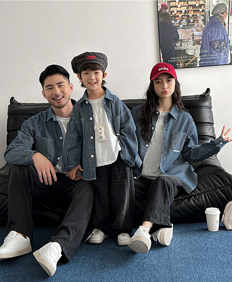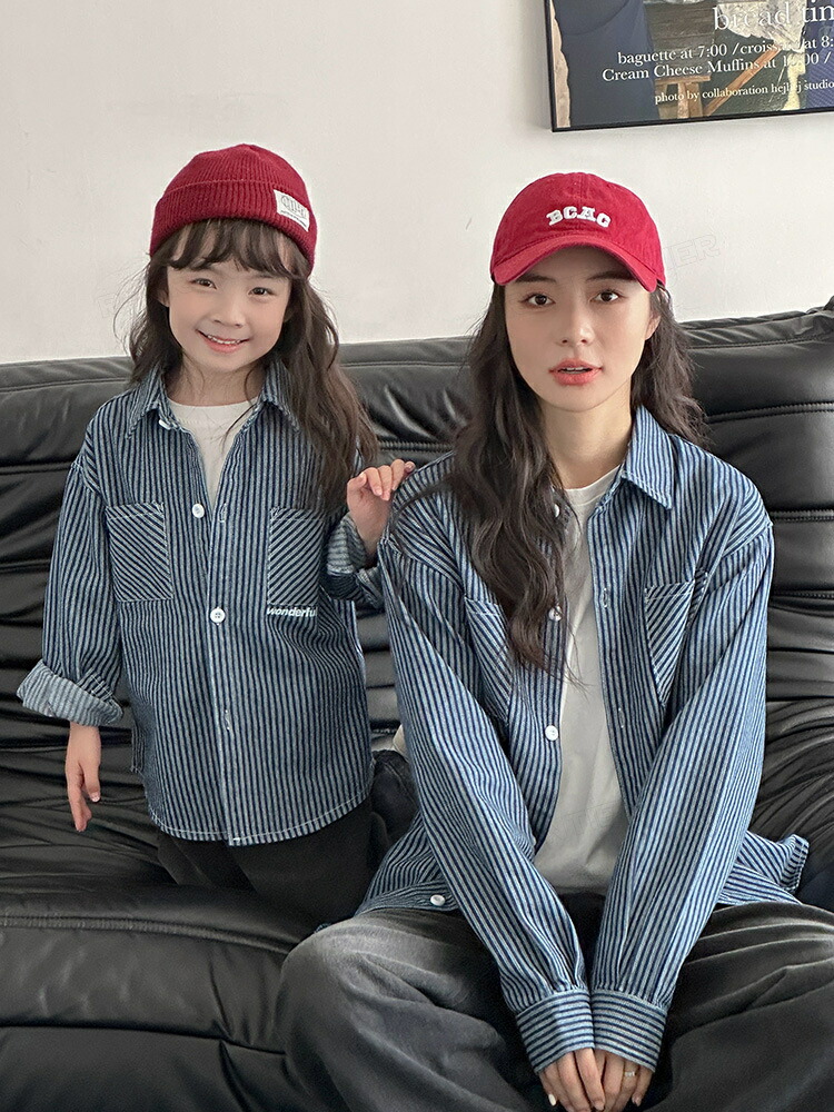 リンクコーデ 親子 セット 縞柄 シャツ デニムパンツ 親子 ペアルック トップス 親子コーデ 長袖 パパ ママ 子供 母の日 父の日 誕生日 プレゼント 秋物