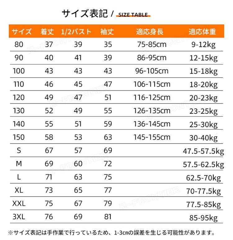 horizontal-key: 80 90 100 110 120 130 140 150 S M L XL 2XL 3XL