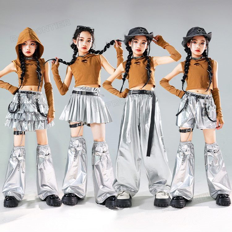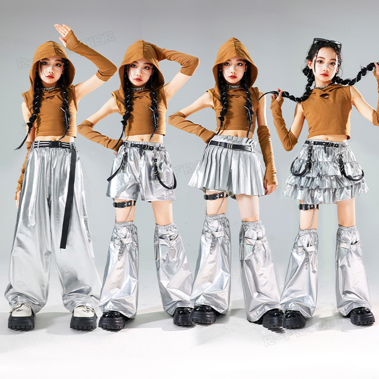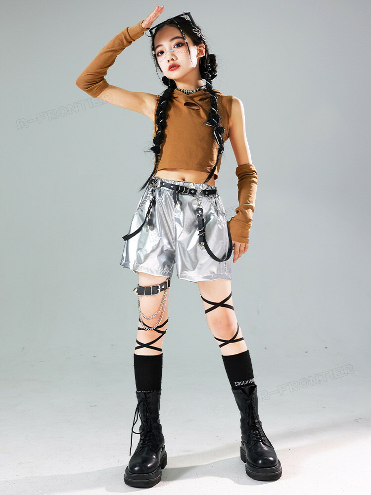 キッズダンス衣装 シルバーパンツ セッ