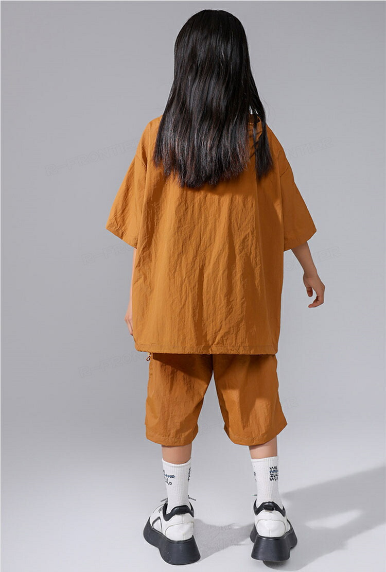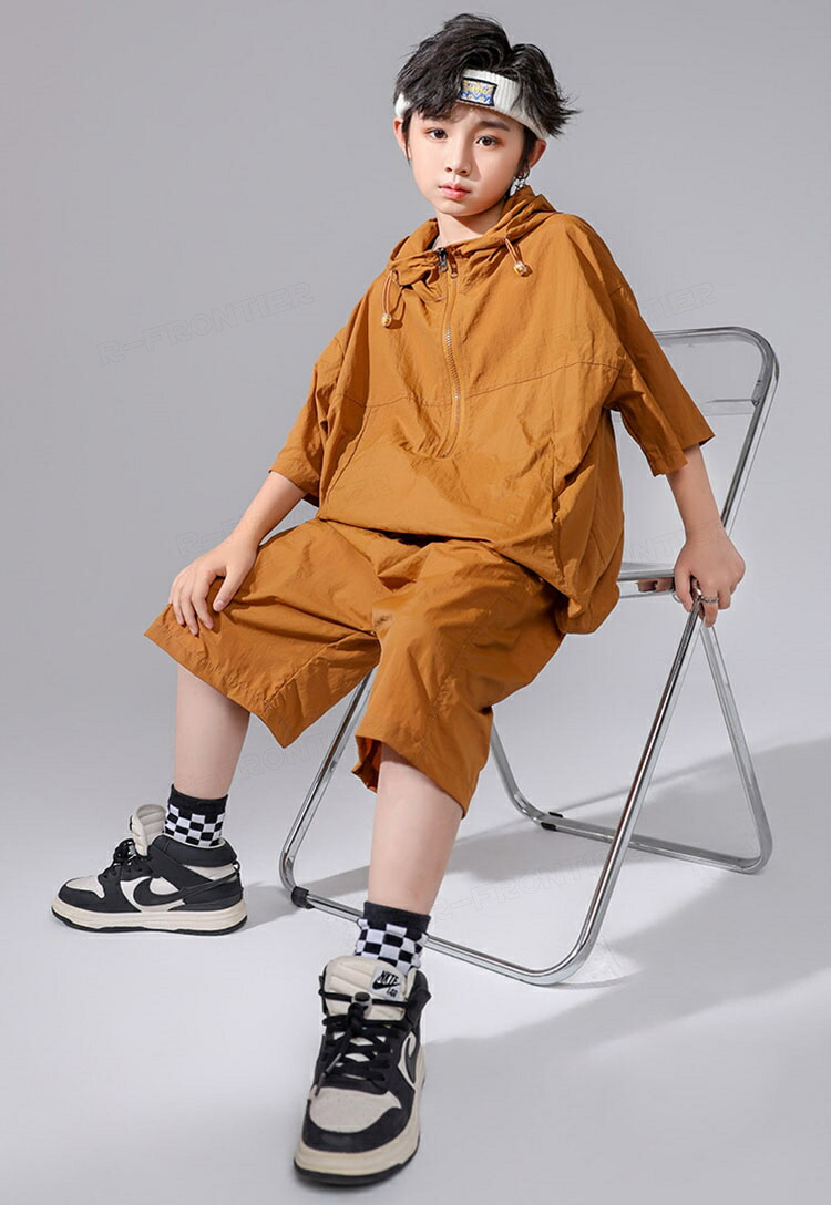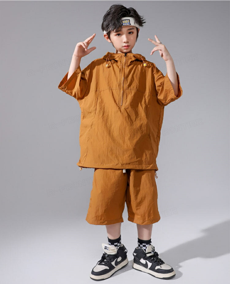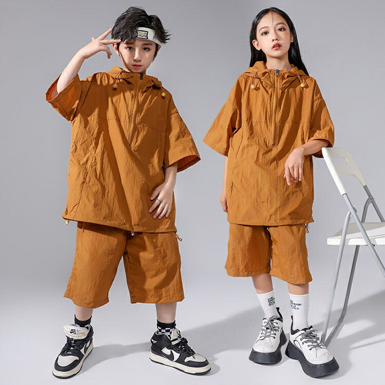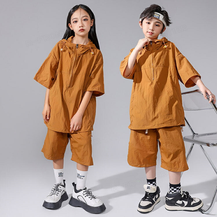 運動風 ダンスセット ダンス衣装 キッズ セットアップ 半袖 パーカー ハーフパンツ ジャズダンス 韓国 k-pop ヒップホップ hiphop 演出服 110-180cm