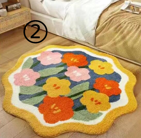 フラワーマルチマット100cm*100cmチューリップニコちゃんスマイル花柄花型丸円大きい大きめおしゃれ可愛い韓国雑貨インテリア北欧滑り止めラグカーペット玄関リビング子ども部屋タオル地バスマット柔らか