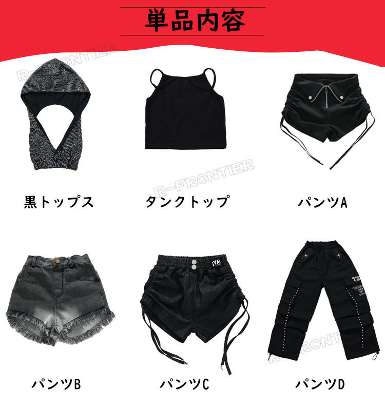 horizontal-key: 黒トップスのみ タンクトップのみ パンツAのみ パンツBのみ パンツCのみ パンツDのみ セットA セットB セットC セットD セットE セットF