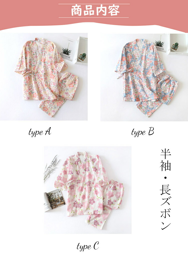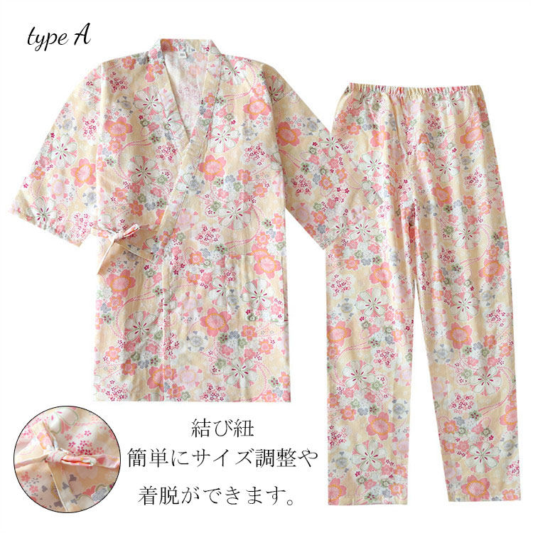 甚平 レディース パジャマ 花柄 ダブ
