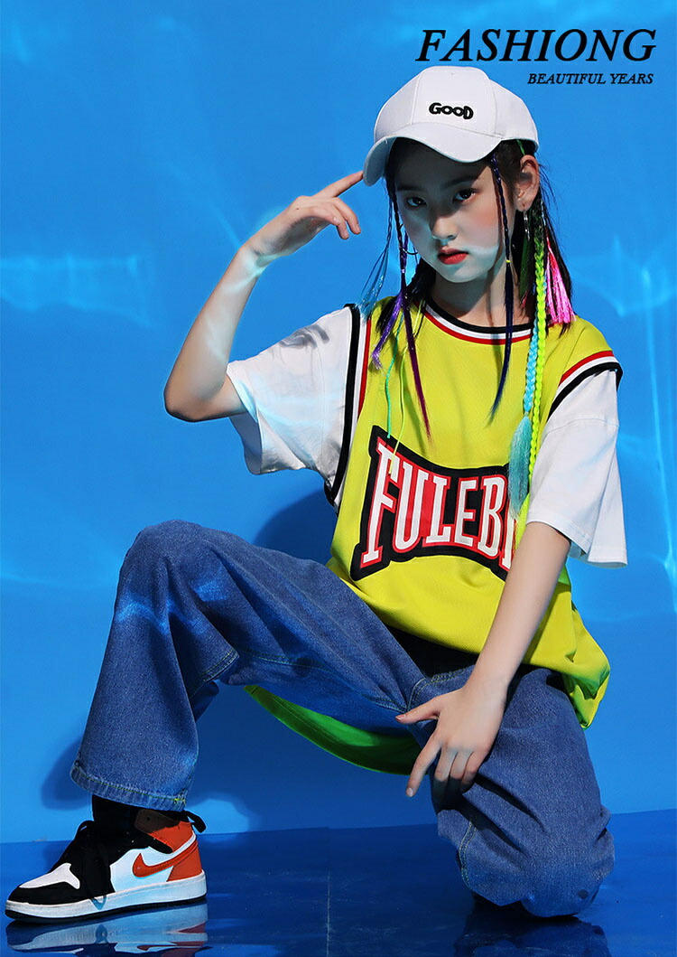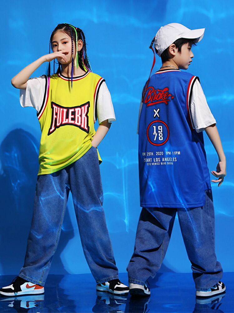 キッズダンス衣装 セットアップ HIPHOP ヒップホップ ダンス衣装 バスケットボール 半袖 レイヤード風 ステージ衣装 子供 練習着 韓国 発表会 おしゃれ 韓国 かっこいい 派手 110-170