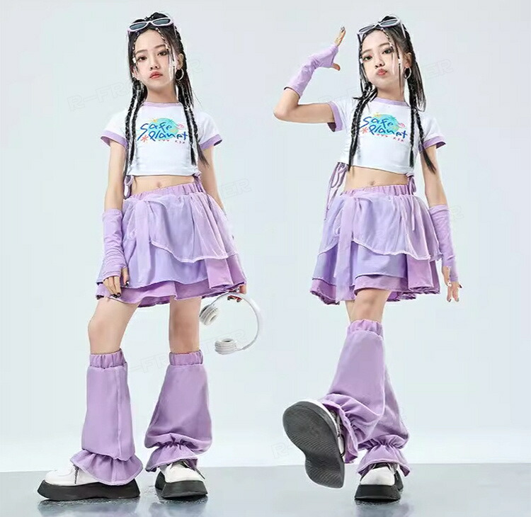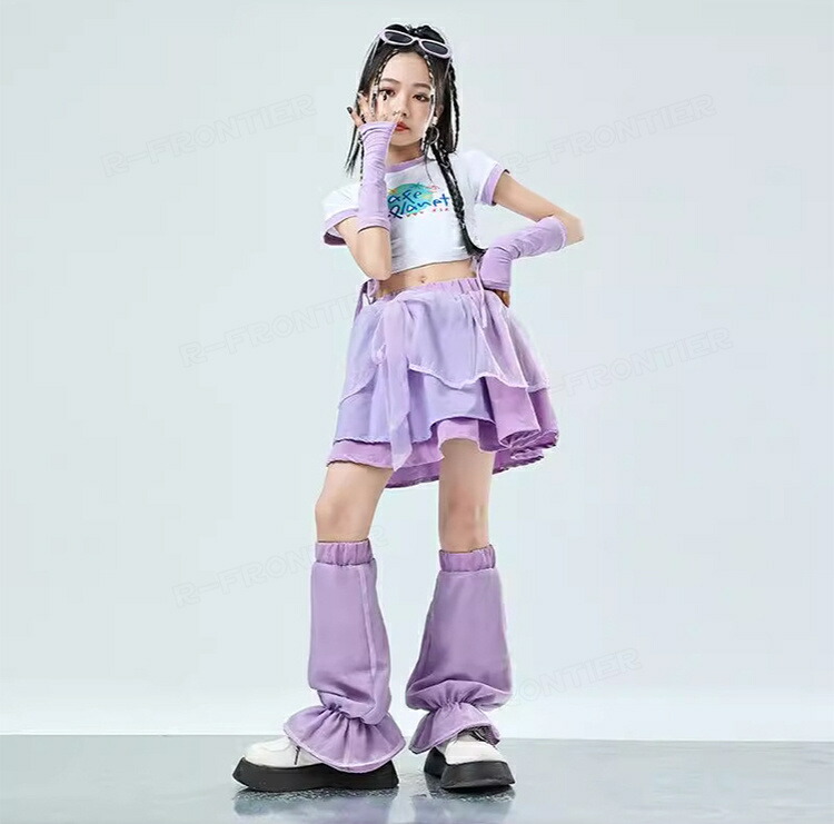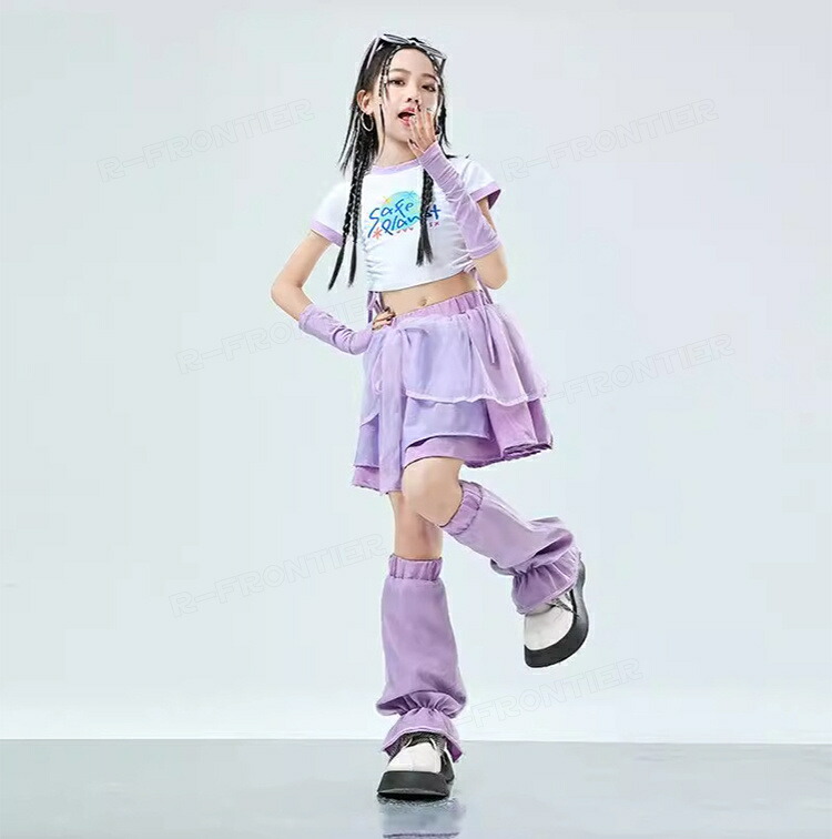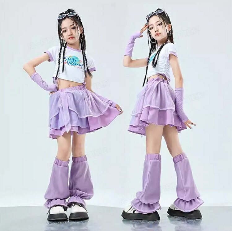 ダンス衣装 キッズ セットアップ へそ出しトップス スカート レッグウォーマー ジャズダンス ガールズ 韓国 ヒップホップ hiphop セットアップ 演出服 応援団 練習着 110-180cm