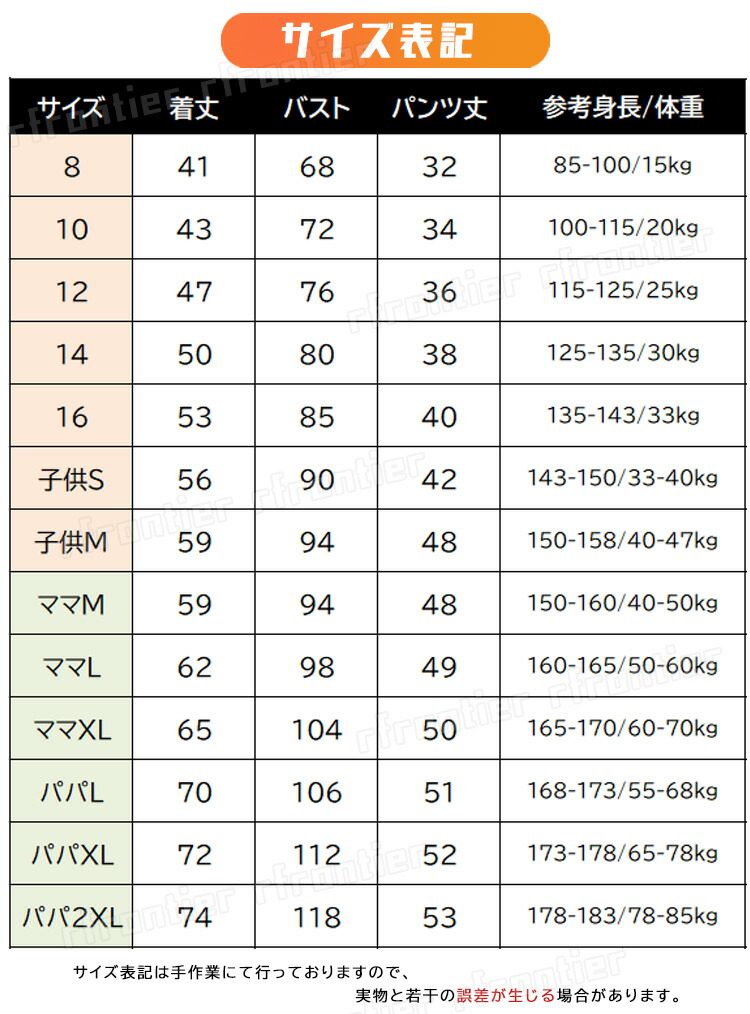 vertical-key: 子供8 子供10 子供12 子供14 子供16 子供S 子供M ママM ママL ママXL パパL パパXL パパ2XL