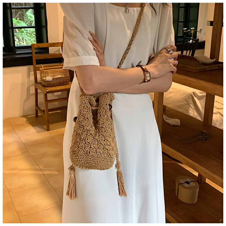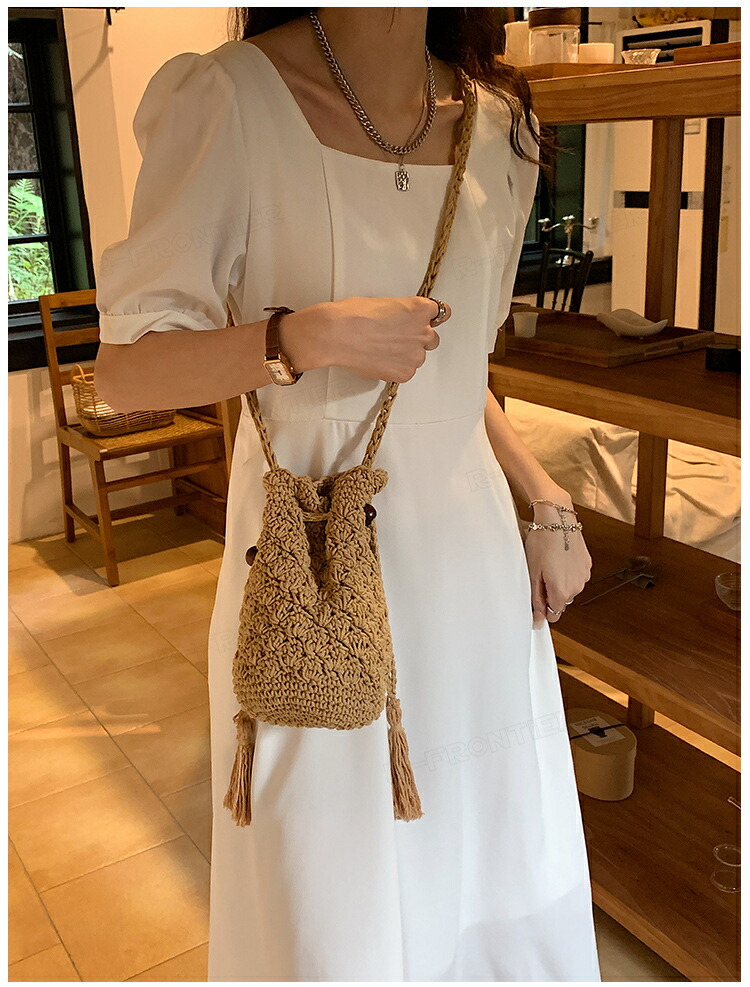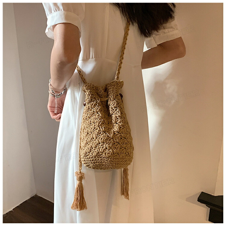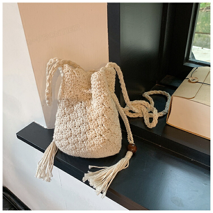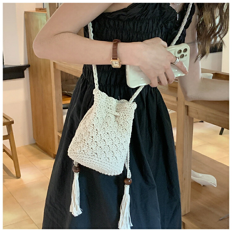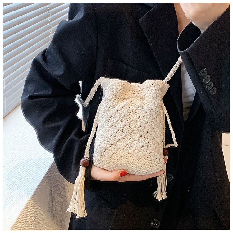 かごバッグ 巾着ポーチ スマホショルダーバッグ 編みポーチ スマホショルダー レディース ミニバッグ おしゃれ かわいい ショルダー 肩掛け 携帯 バック