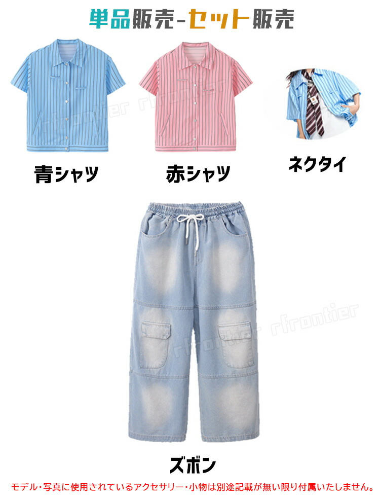horizontal-key: 青シャツ 赤シャツ ズボン 青シャツ+ズボン 赤シャツ+ズボン 青シャツ+ズボン+ネクタイ 赤シャツ+ズボン+ネクタイ