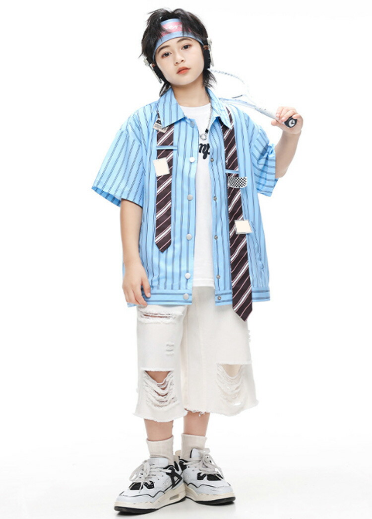 horizontal-key: 青シャツ パンツ 青シャツ+パンツ 青シャツ+パンツ+ネクタイ