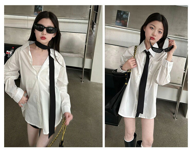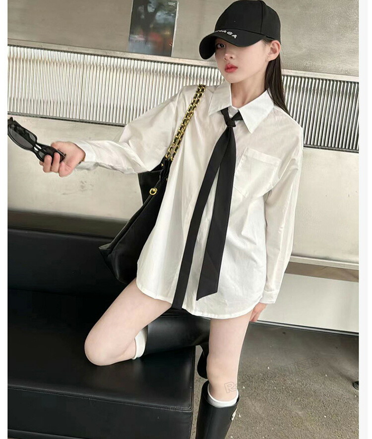 シアースリーブ ドッキングシャツ ボウタイシャツブラウス