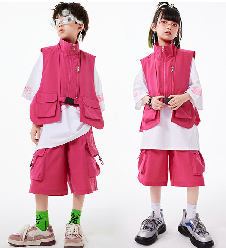 キッズダンス衣装 韓国 かっこいい 黒 トップス レッド スカート カーゴ服 女の子 演出服 ジュニア 子供 hiphop 発表会 演出服 応援 110 120 130 140 150 160 170