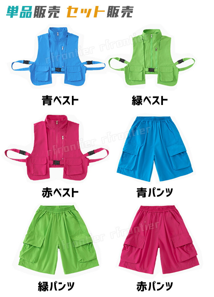 horizontal-key: 青ベスト 緑ベスト 赤ベスト 青パンツ 緑パンツ 赤パンツ 青ベスト+青パンツ 緑ベスト+緑パンツ 赤ベスト+赤パンツ 青3点セット 緑3点セット 赤3点セット