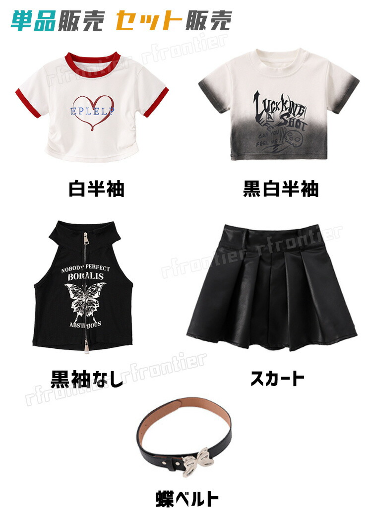 horizontal-key: 白半袖 黒白半袖 黒袖なし スカート スカート+蝶ベルト 白半袖+スカート 黒白半袖+スカート 黒袖なし+スカート 白半袖+スカート+蝶ベルト 黒白半袖+スカート+蝶ベルト 黒袖なし+スカート+蝶ベルト
