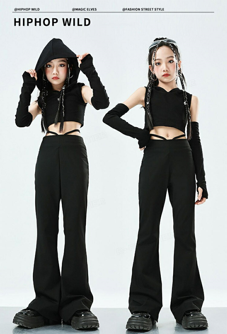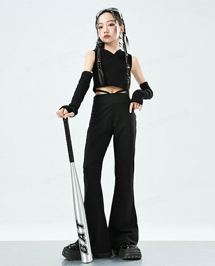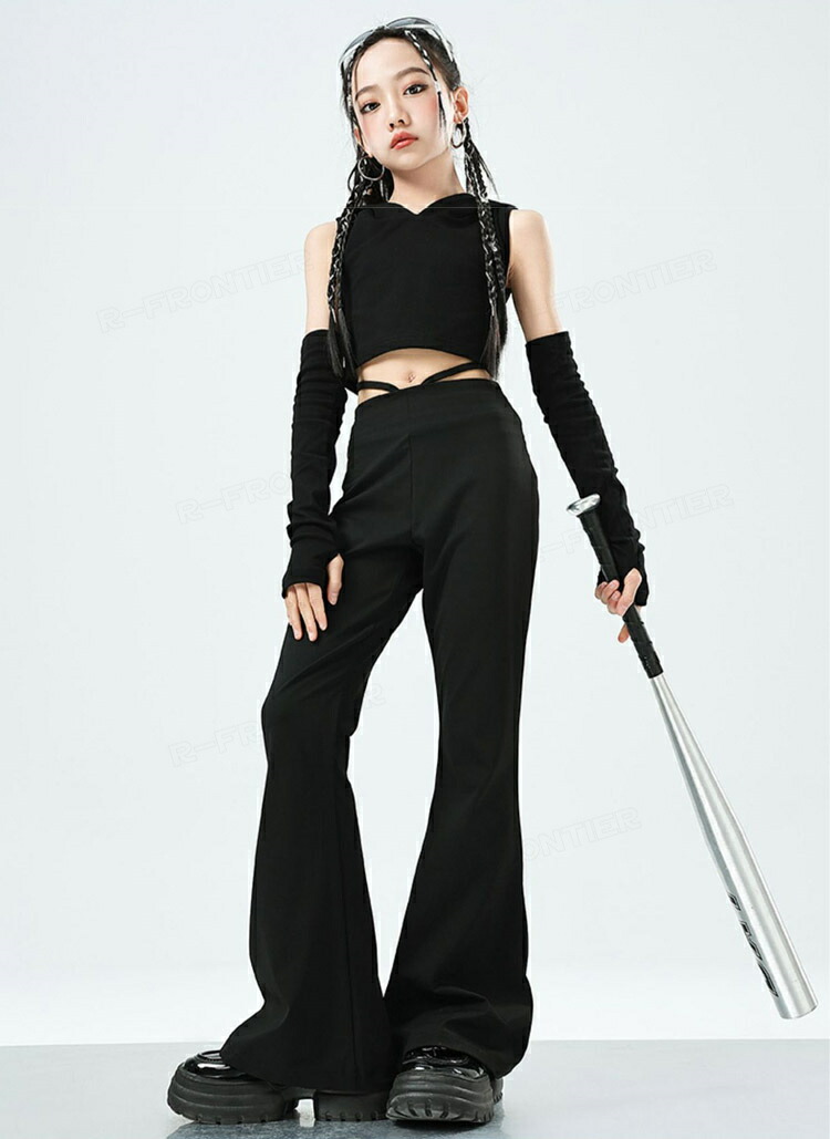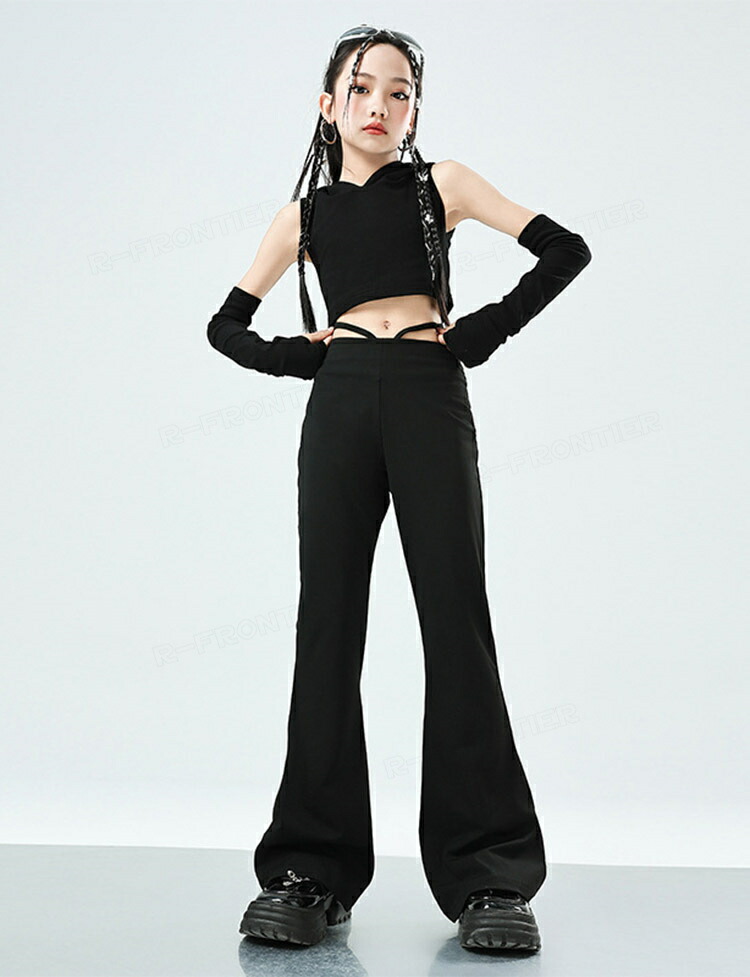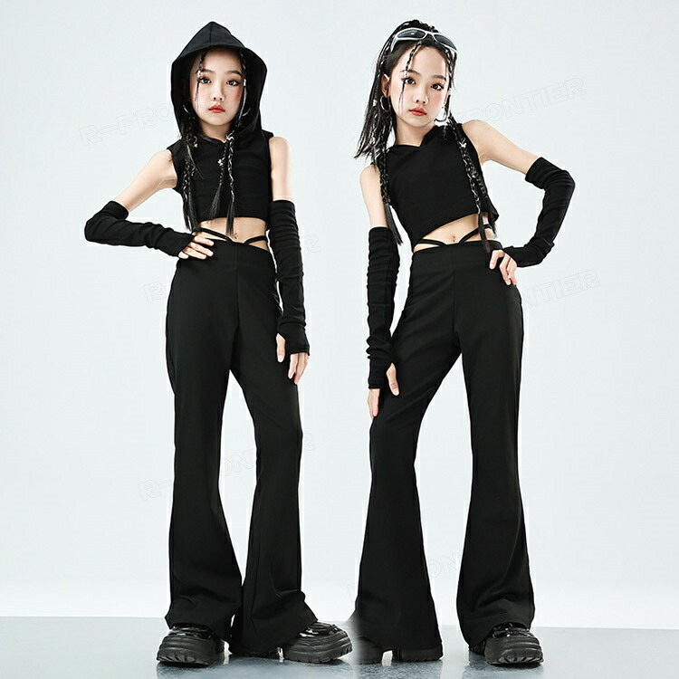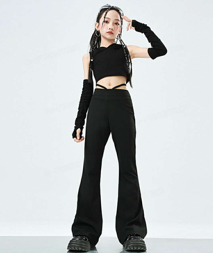 ジャズダンス 衣装 キッズ セットアップ へそ出しトップス ラップパンツ 黒 tシャツ ジャズダンス 女の子 ガールズ 演出服 応援団 ステージ衣装 110-180