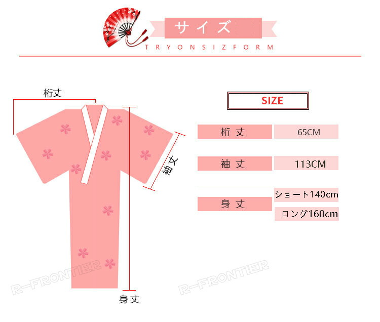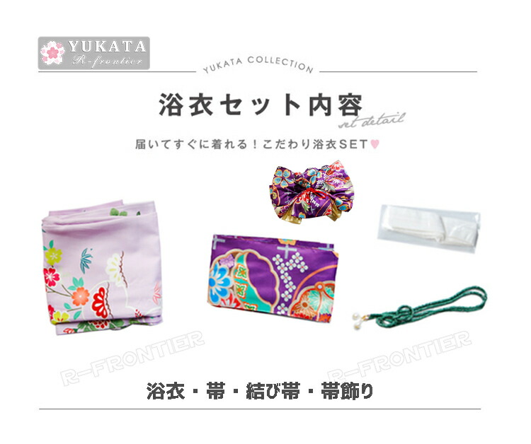 horizontal-key: 浴衣のみ (身丈140cm) 浴衣のみ (身丈160cm) 浴衣+帯+結び帯+帯飾り(身丈140cm) 浴衣+帯+結び帯+帯飾り(身丈160cm)
