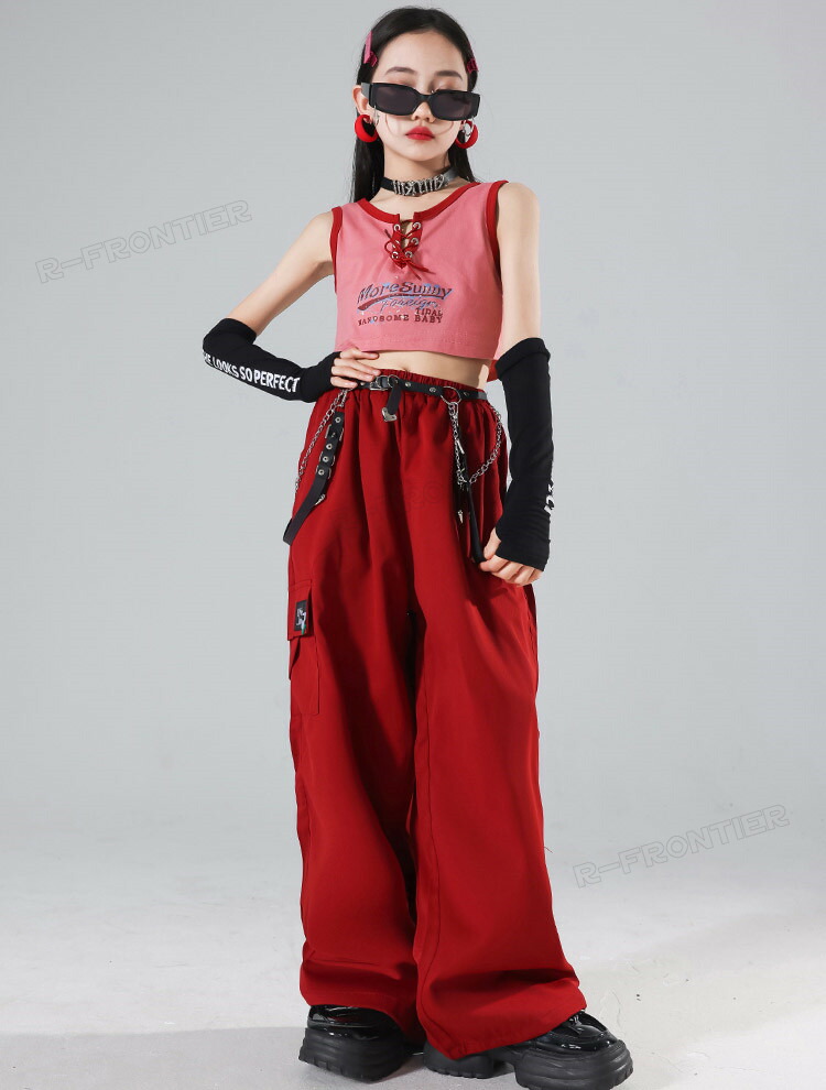 ダンス衣装 赤 黒 ヒップホップ セッ