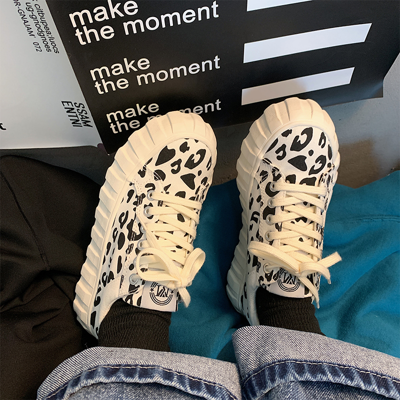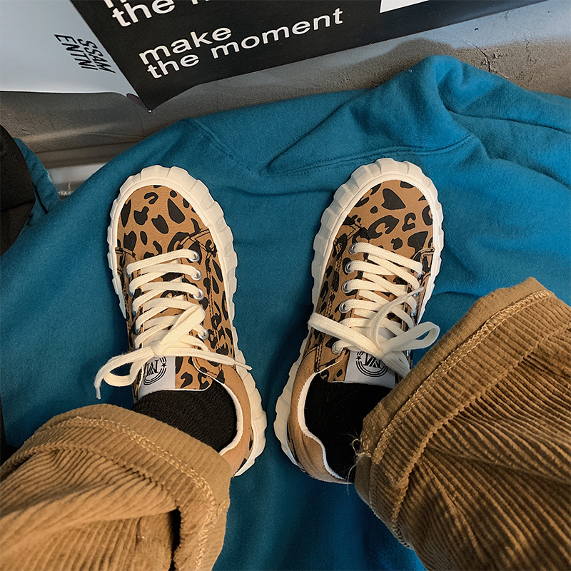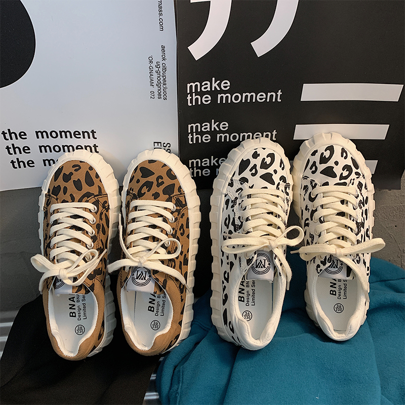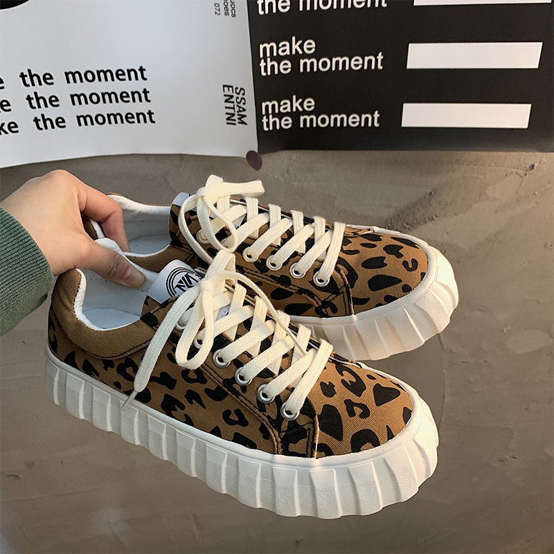 レオパード スニーカー 2色 22~25cm シューズ 靴 ヒョウ柄 白 ホワイト ブラウン 茶色 厚底 レディース ガールズ ダンス 衣装 ヒップホップ HIPHOP ストリート ロゴ おしゃれ かっこいい 総柄 フラット ローカット アニマル柄 レトロ 通学 韓国