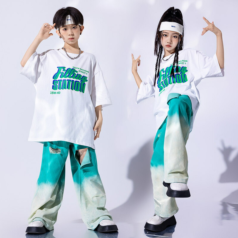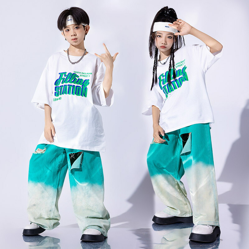 ダンス衣装 キッズ デニム グリーン