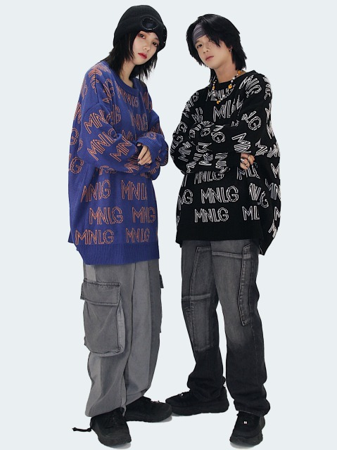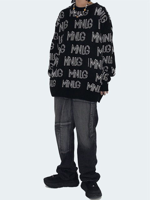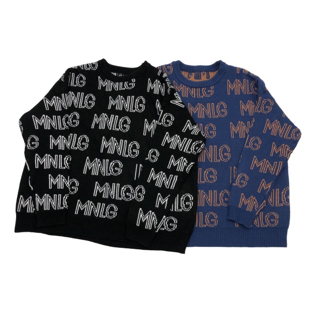 ロゴニット2色総柄セータートップスカッ