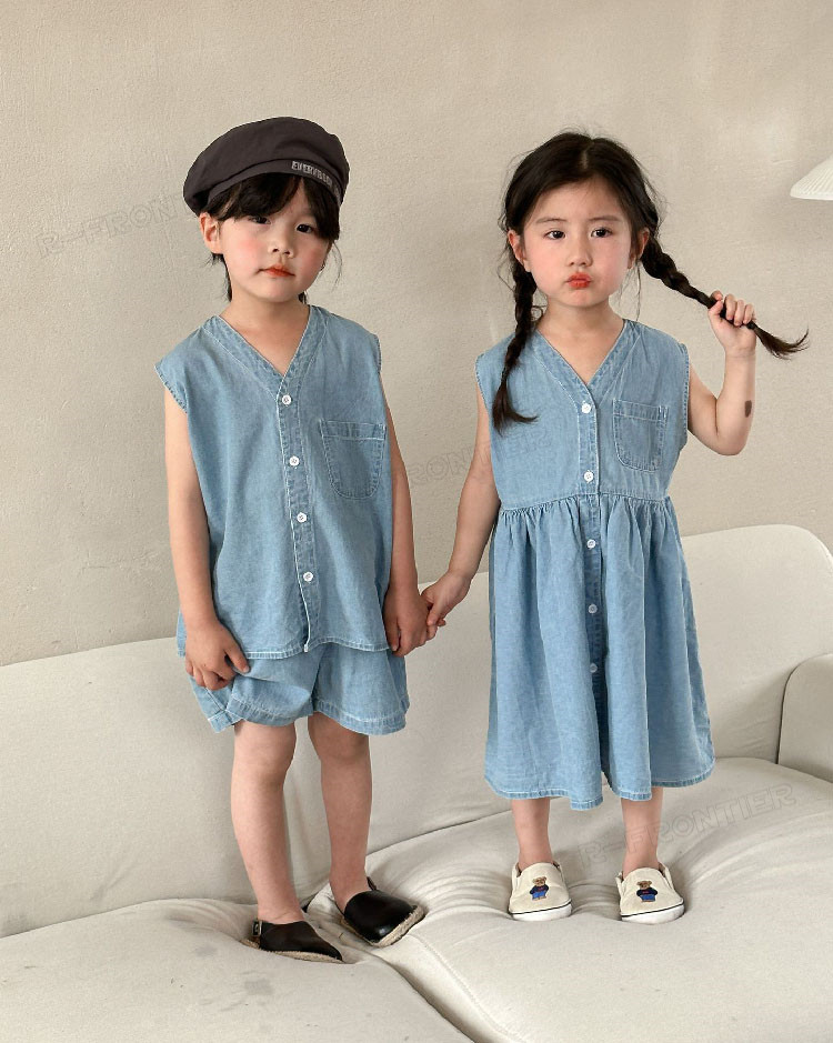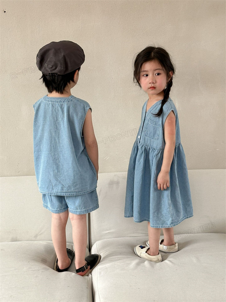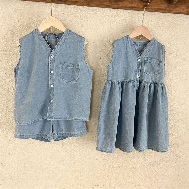韓国 子供服 兄妹 お揃い セットアップ 女の子 ワンピース 可愛い デニム 男の子 子供服 コーデ 姉妹 かわいい 兄弟 子供 ベビー 男女 プレゼント 誕生日