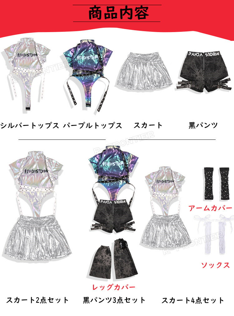 horizontal-key: シルバートップスのみ パープルトップスのみ スカートのみ 黒パンツのみ スカート2点セット 黒パンツ3点セット スカート4点セット