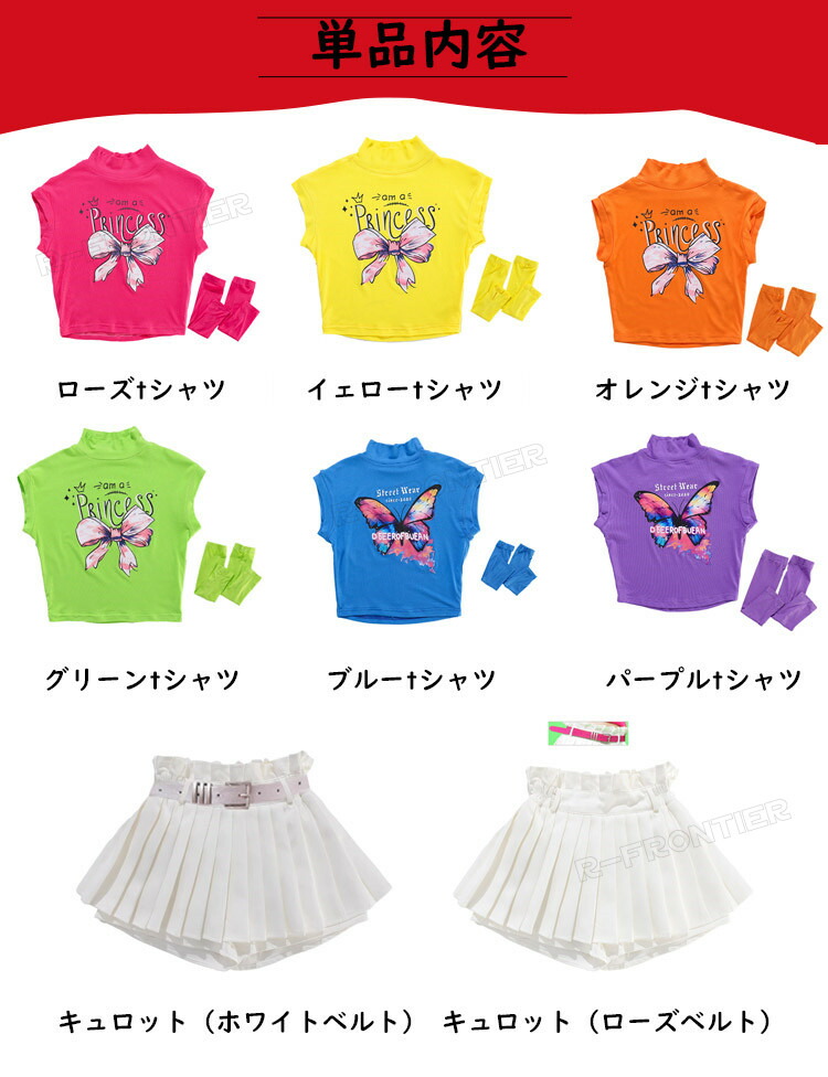 horizontal-key: ローズtシャツ イェローtシャツ オレンジtシャツ グリーンtシャツ ブルーtシャツ パープルtシャツ キュロット(ホワイトベルト付き) キュロット(ローズベルト付き)