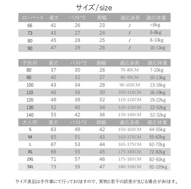Key2: ロンパース66 ロンパース73 ロンパース80 ロンパース90 シャツ80 シャツ90 シャツ100 シャツ110 シャツ120 シャツ130 シャツ140 大人S 大人M 大人L 大人XL 大人2XL 大人3XL