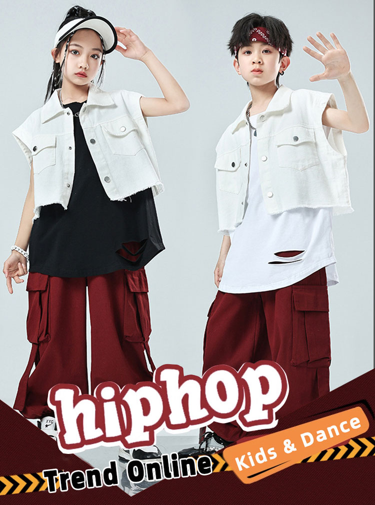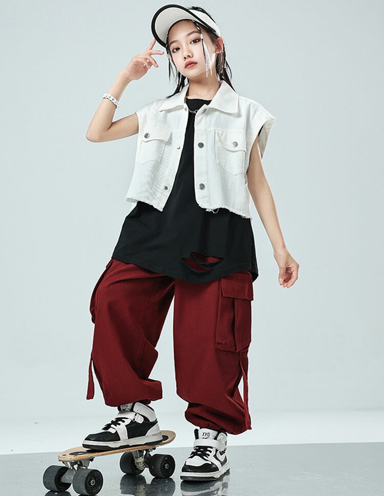 ダンス トップス へそ出し キッズ 女の子 かっこいい デニムベスト ショートパンツ 韓国 k-pop衣装 ヒップホップ ジャズダンス 団体 HIPHOP 演出服 応援団 イベント 110-180cm
