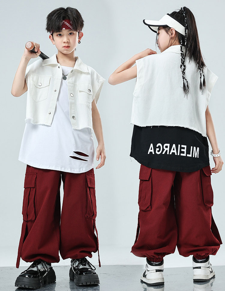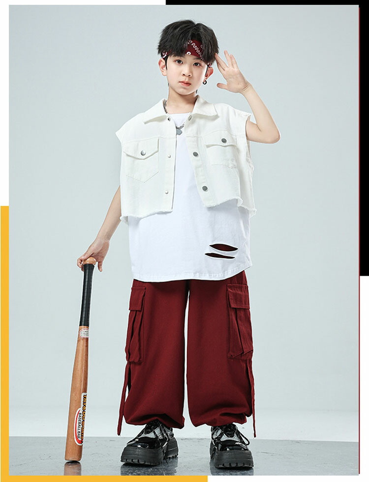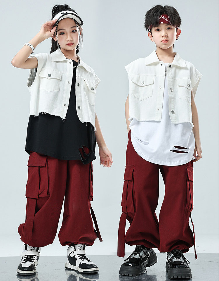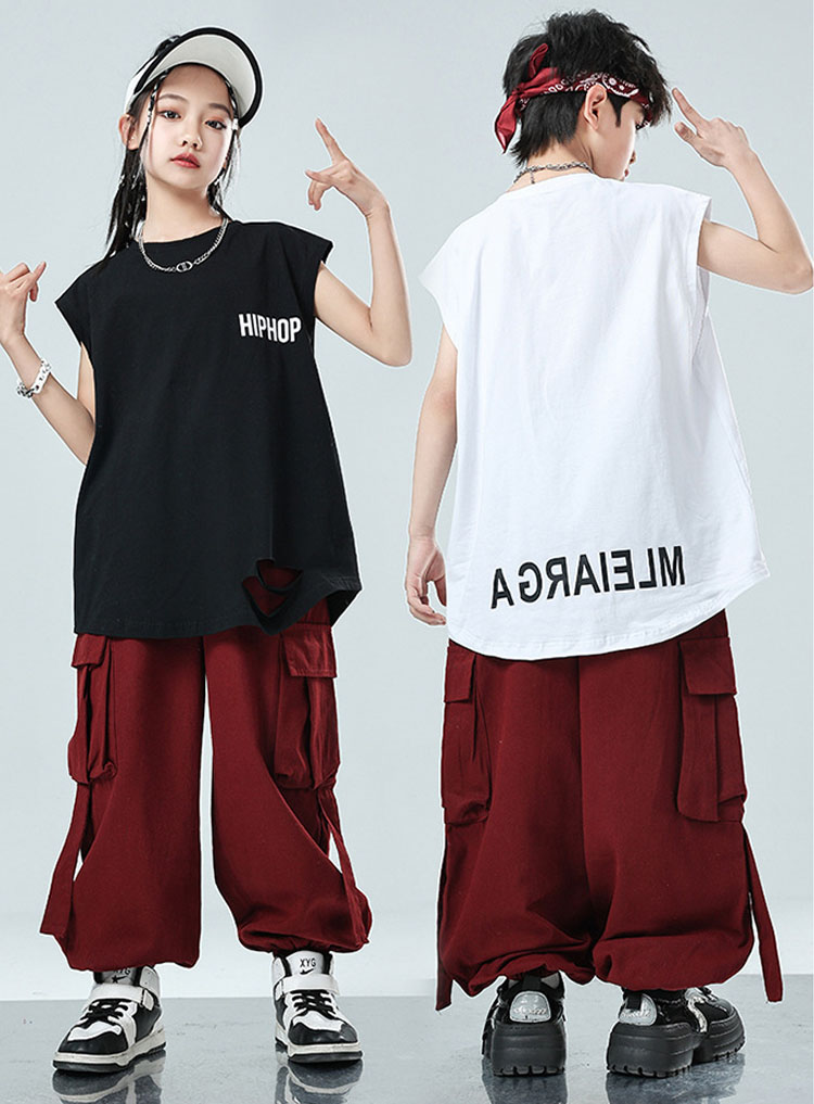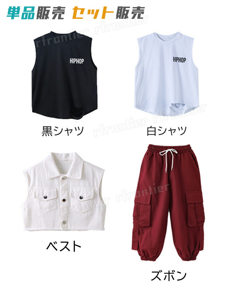 キッズ ダンス衣装 ベスト 赤 黒 カ