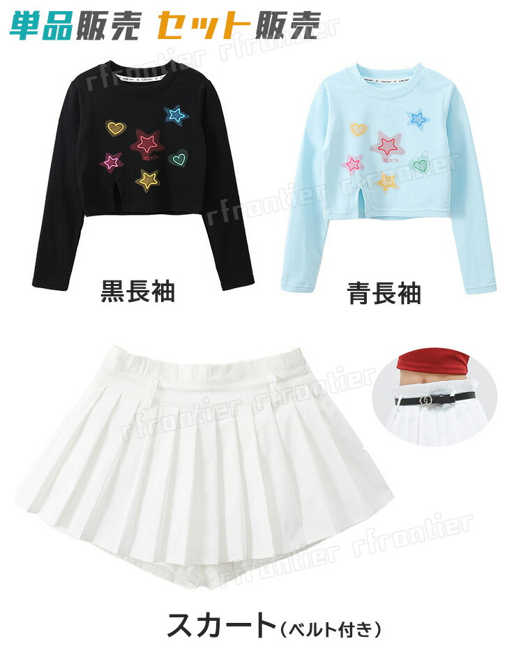 horizontal-key: 黒長袖 青長袖 スカート 黒長袖+スカート 青長袖+スカート
