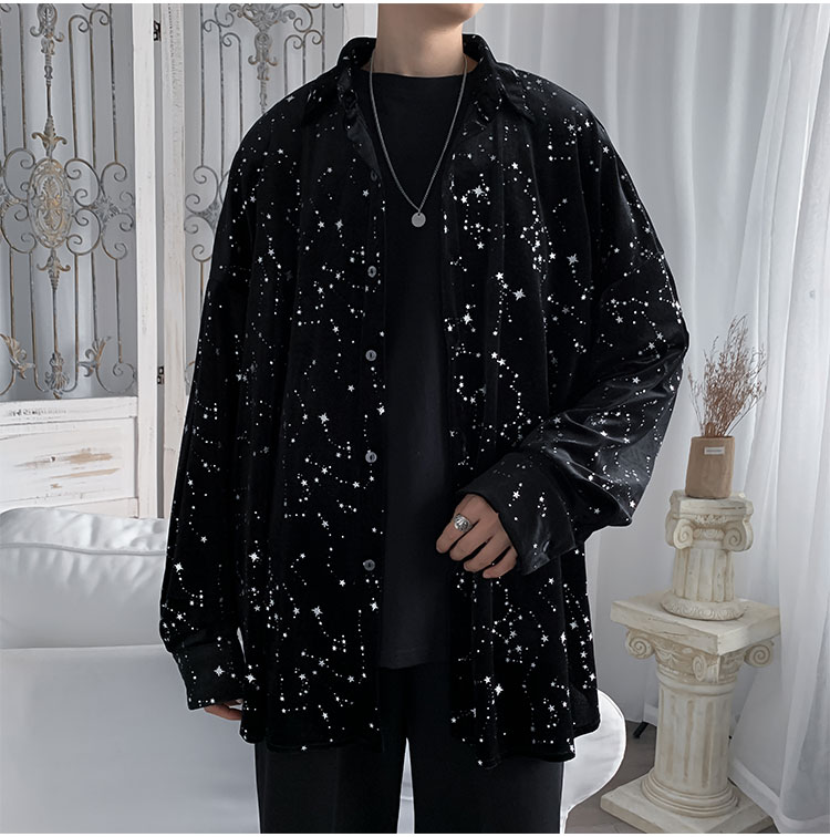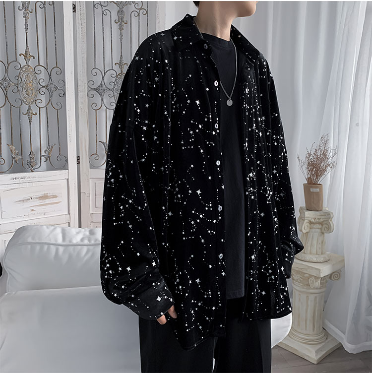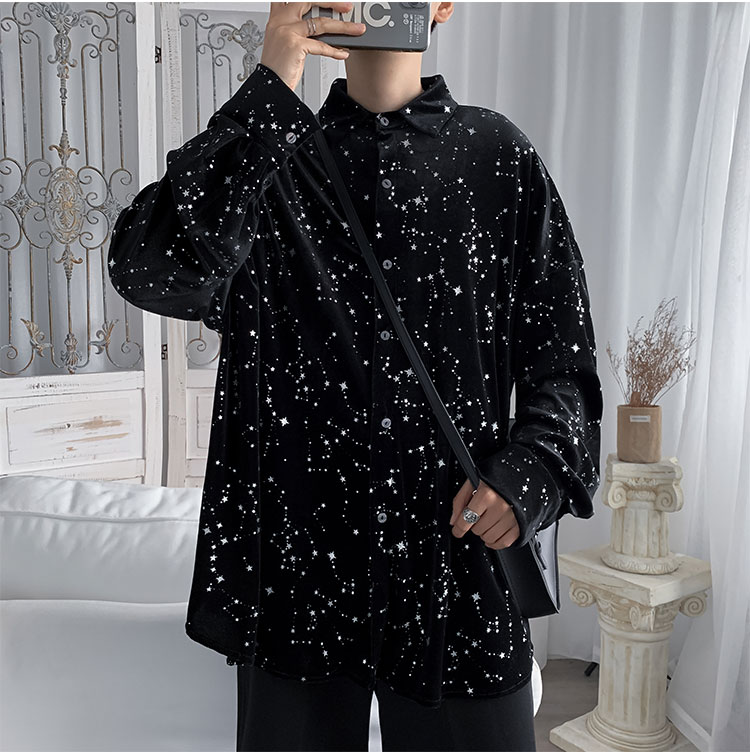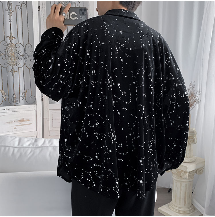 星柄ブラウス長袖トップスカットソー黒ブ