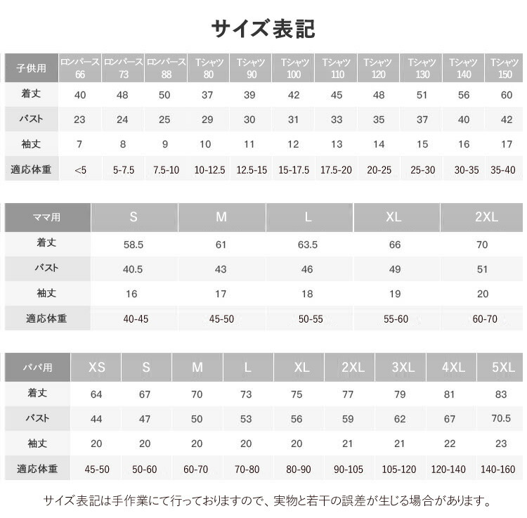Key0: ロンパース66 ロンパース73 ロンパース80 子供80 子供90 子供100 子供110 子供120 子供130 子供140 子供150 ママXS ママS ママM ママL パパXS パパS パパM パパL パパXL パパ2XL