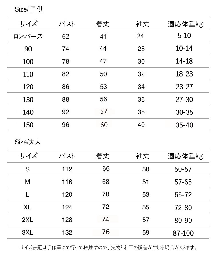 Key0: ロンパース 子供80 子供90 子供100 子供110 子供120 子供130 子供140 子供150 大人S 大人M 大人L 大人XL 大人2XL 大人3XL