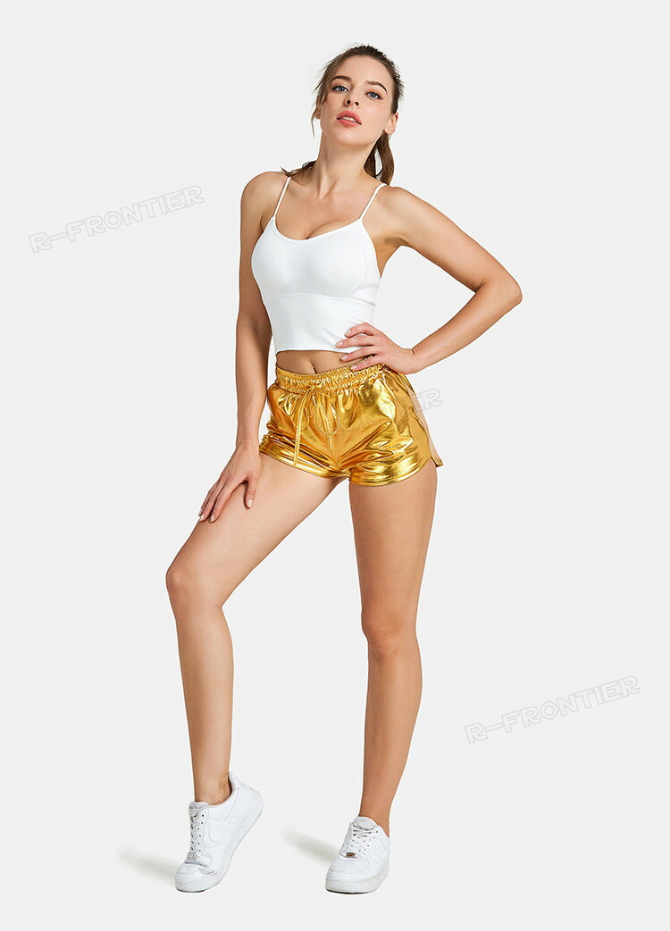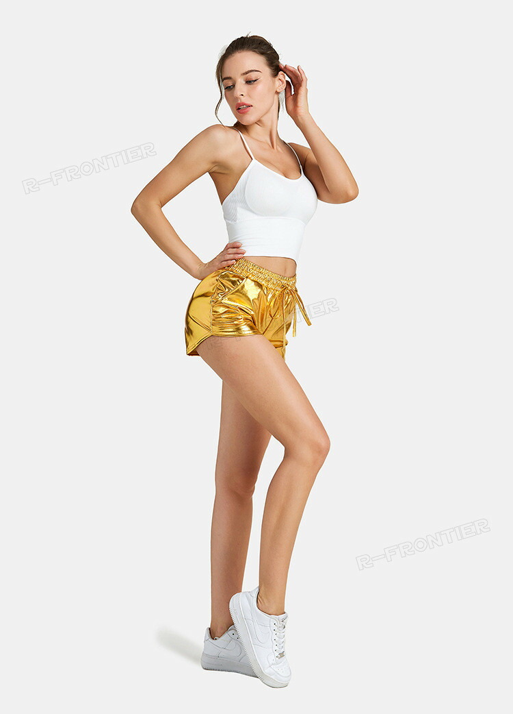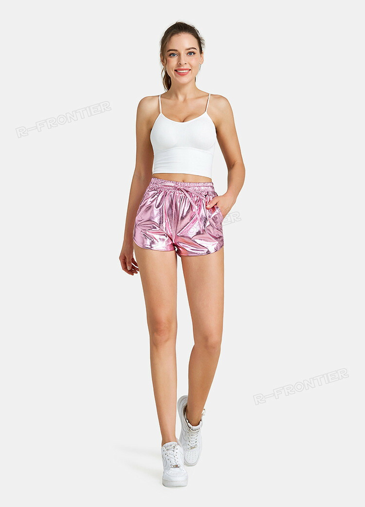 ハイウエスト メタリック ショートパン