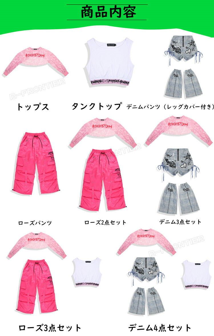 horizontal-key: トップスのみ タンクトップのみ ローズパンツのみ デニムパンツ(レッグカバー付き) ローズ2点セット デニムパンツ3点セット ローズ3点セット デニムパンツ4点セット
