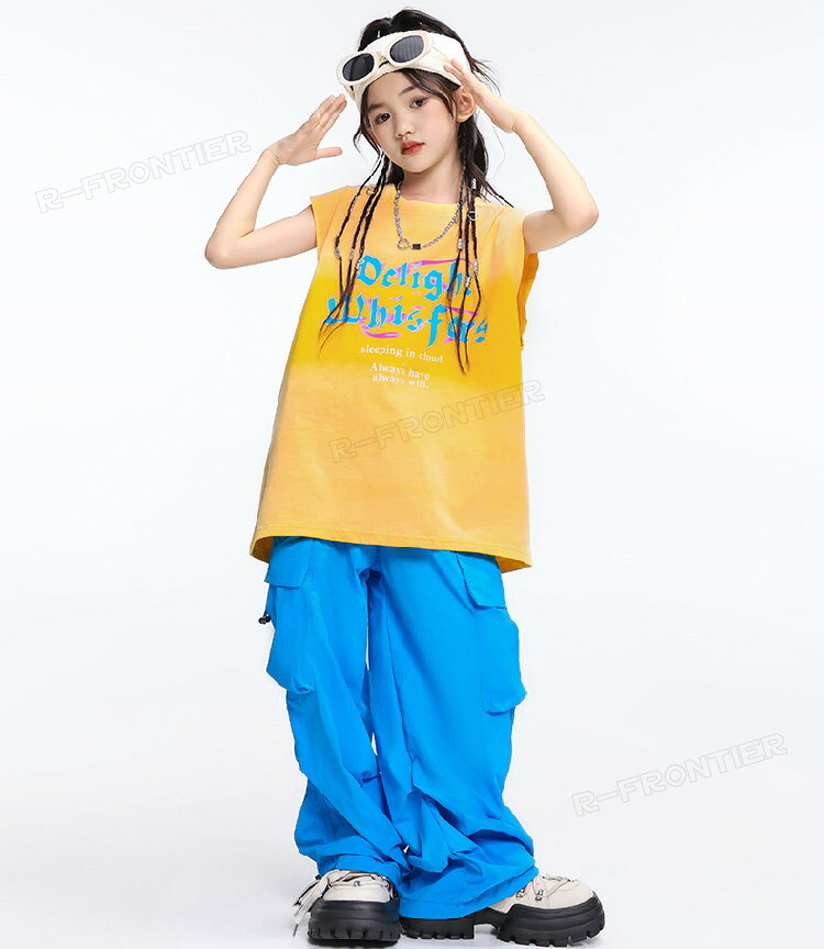 キッズダンス衣装 セットアップ 青パン