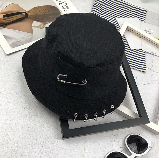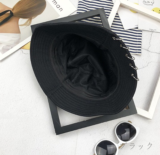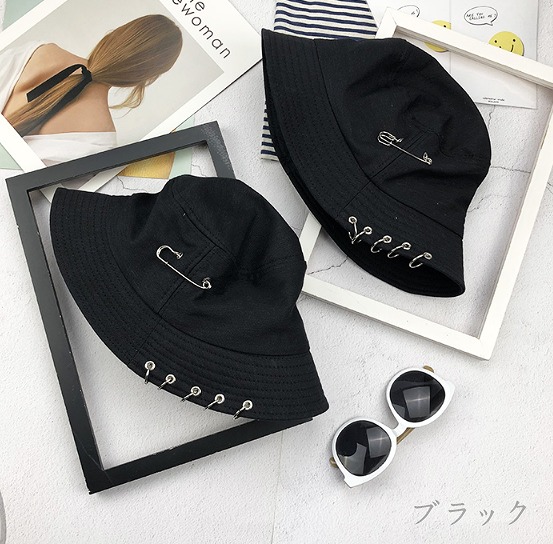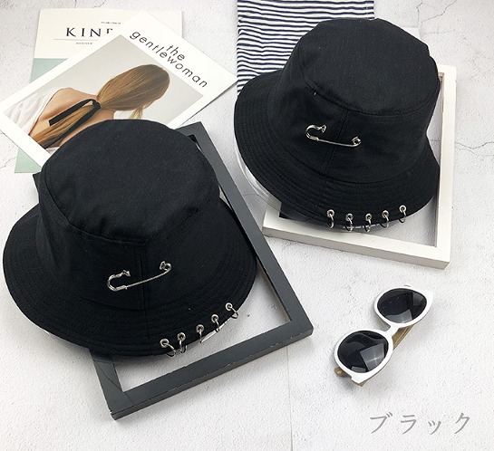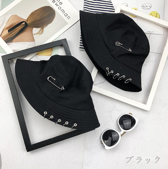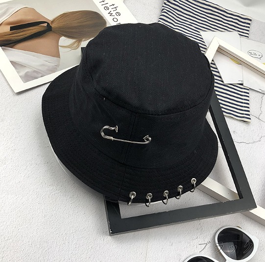 バケットハット黒ブラック安全ピンダンス