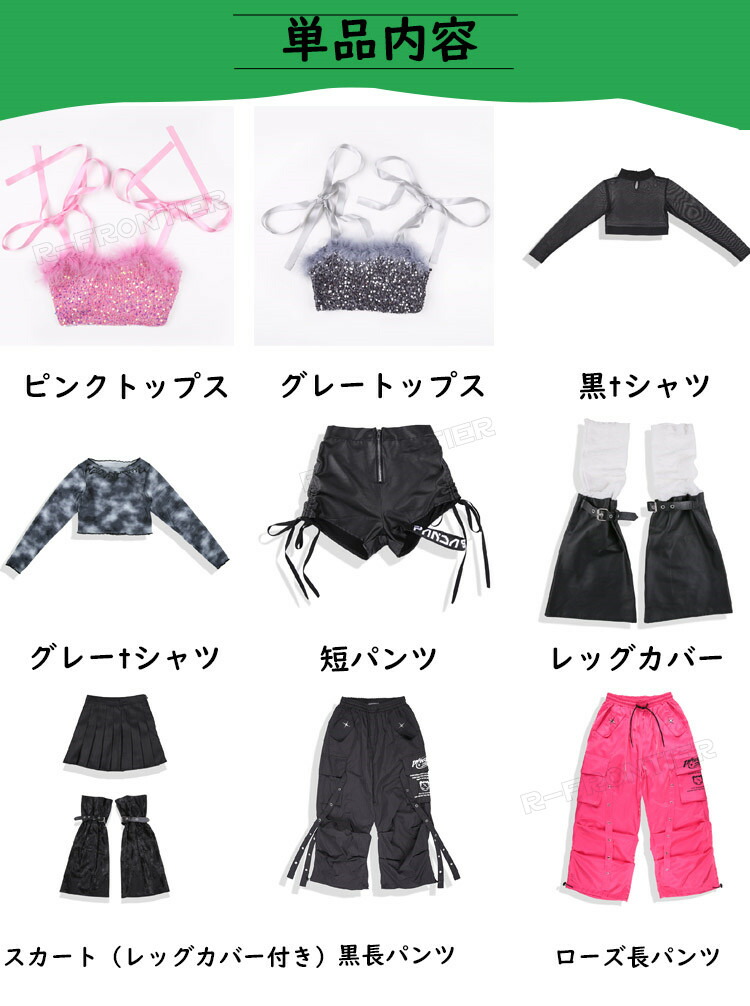horizontal-key: ピンクトップスのみ グレートップスのみ 黒tシャツのみ グレーtシャツのみ 短パンツのみ レッグカバー スカート((レッグカバー付き) 黒長パンツのみ ローズパンツのみ グレー短パンツ3点セット ピンクスカート3点セット ピンクトップス+黒パンツ ピンクトップス+ローズパンツ グレートップス+黒パンツ