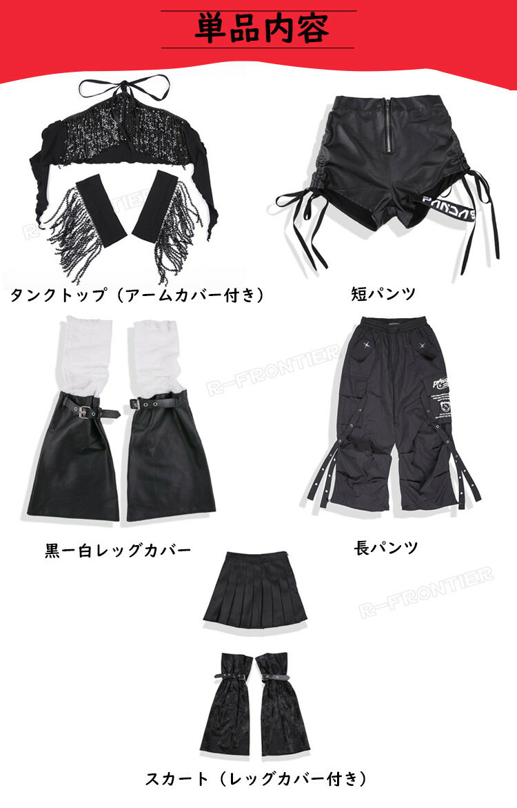 horizontal-key: タンクトップ(アームカバー付き) 短パンツのみ 黒白レッグカバー 長パンツのみ スカート(レッグカバー付き) スカート3点セット 短パンツ3点セット 長パンツ2点セット