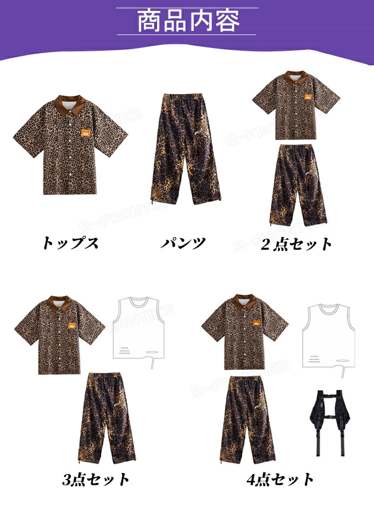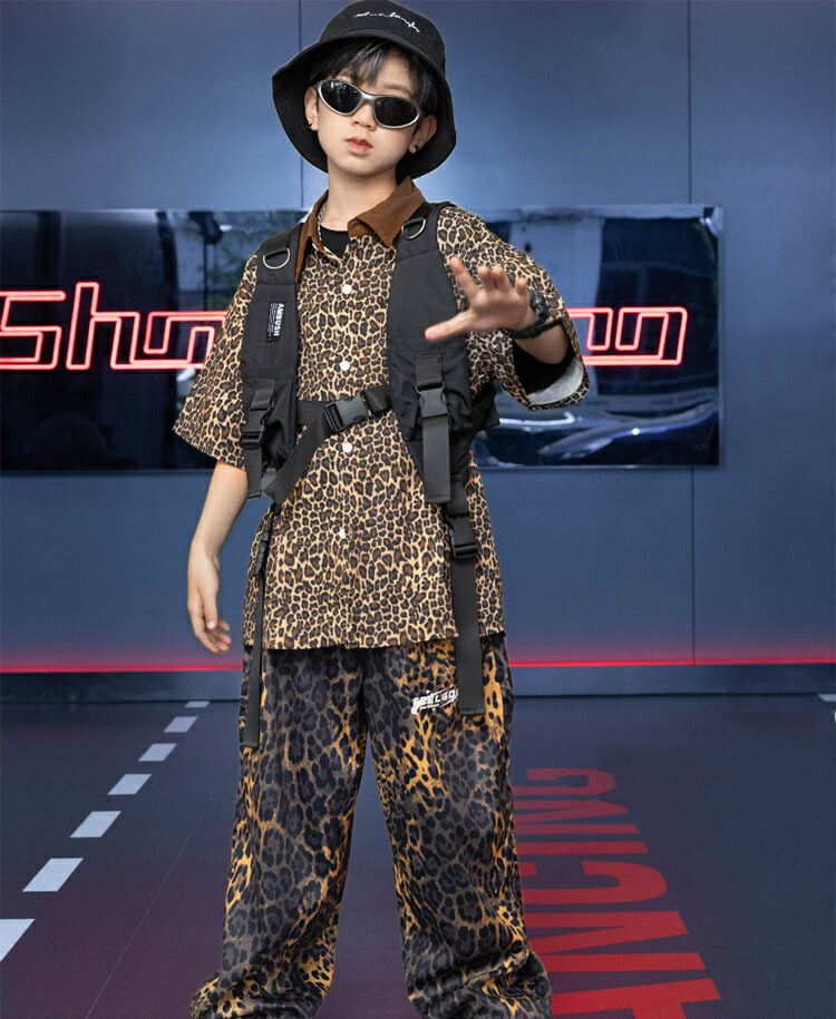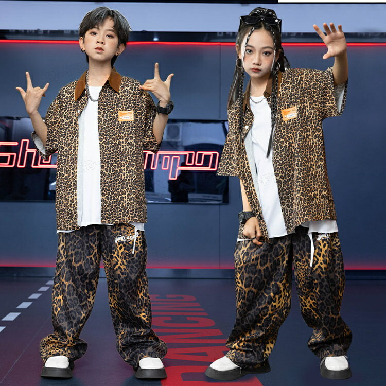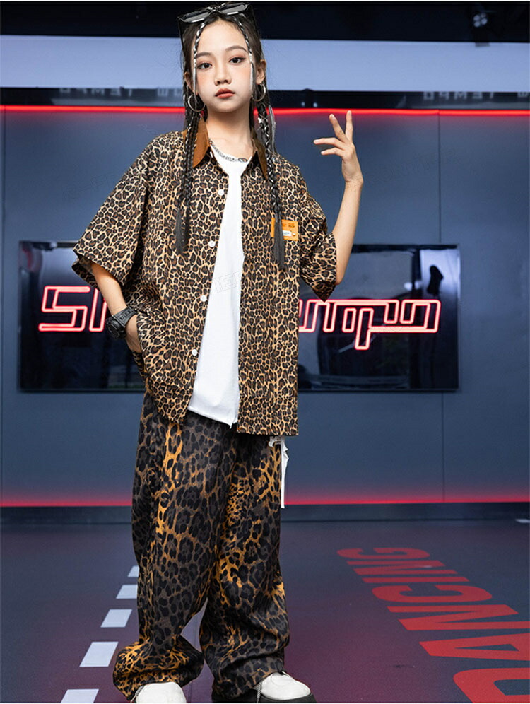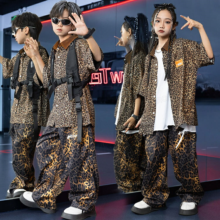 キッズ ダンス 衣装 ヒップホップ ヒョウ柄 シャツ ロングパンツ かっこいい ダンス衣装 ジャズダンス 女の子 ガールズ 韓国 hiphop セットアップ 演出服 応援団 練習着 110 180