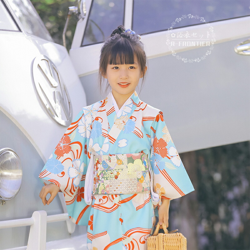 浴衣 子供 女の子 130 浴衣 セット ゆかた 水色 桜 花柄 桜色 浴衣 女の子 可愛い ゆかた ピンク ワンピース 浴衣 お祭り 旅行 かわいい ゆかた