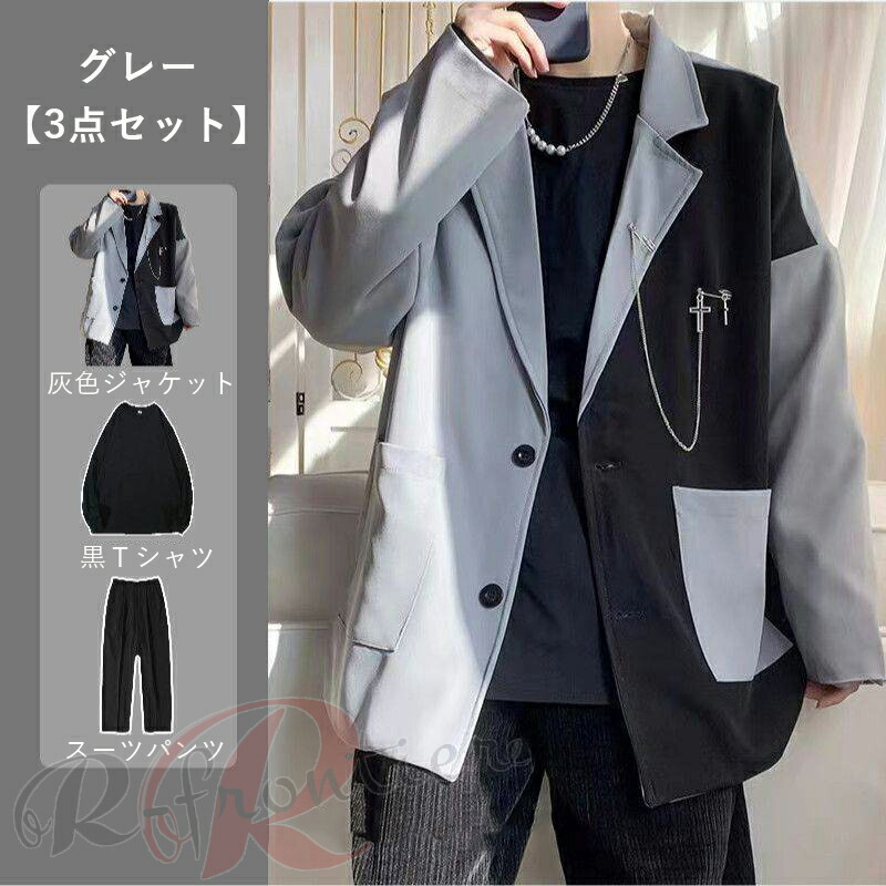 horizontal-key: ホワイト2点セット グレー2点セット ホワイト3点セット グレー3点セット 白ジャケット 灰色ジャケット