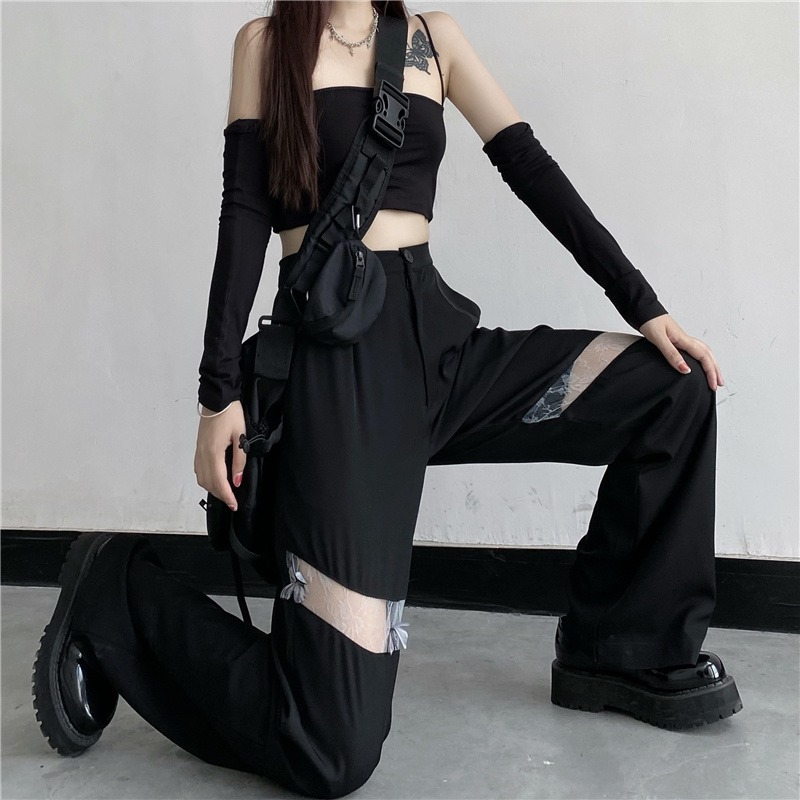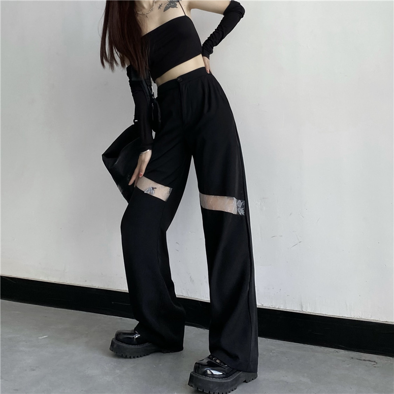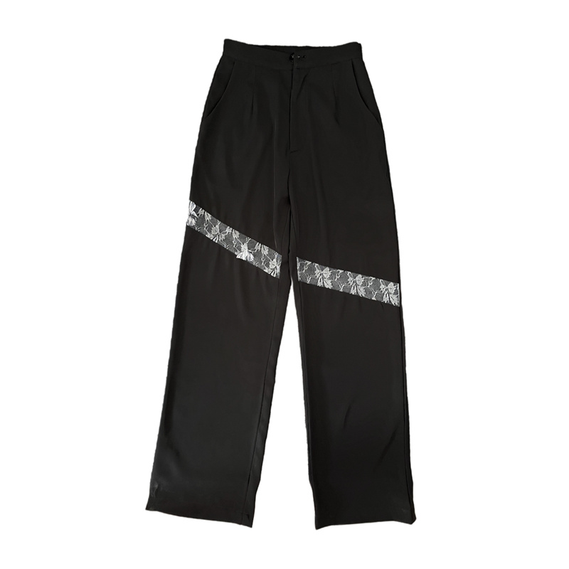 レースパンツボトムスズボンロング黒ブラ