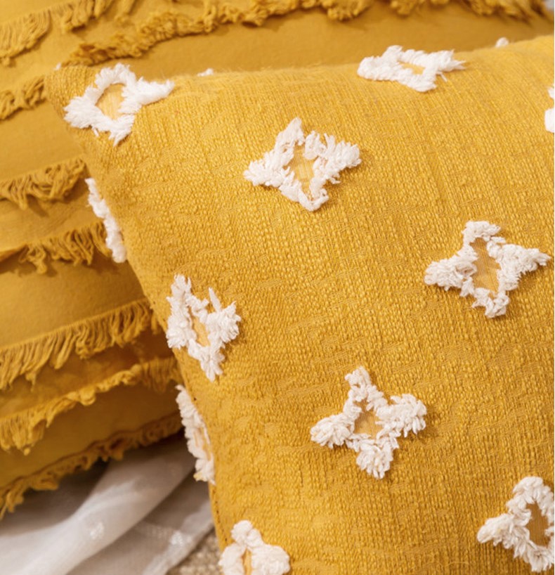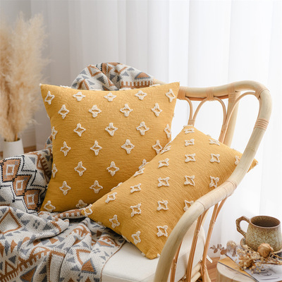 花柄クッション3色クッションカバーカバーイエロー黄色白ホワイトベージュ花柄フラワーもこもこ大きい大きめ45cm×45cm北欧おしゃれ可愛いデザイン洗える四角正方形韓国雑貨インテリア北欧ふわふわ刺繍フリ