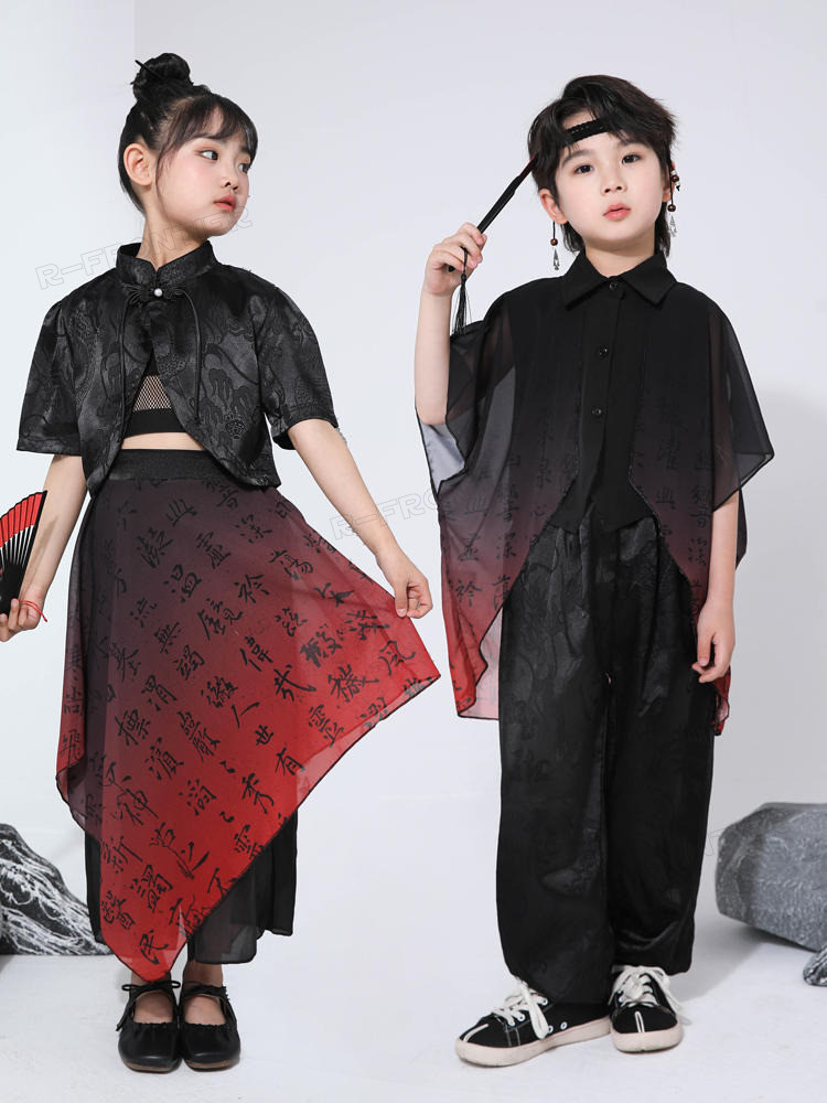 ダンス衣装 赤 黒 ヒップホップ キッ