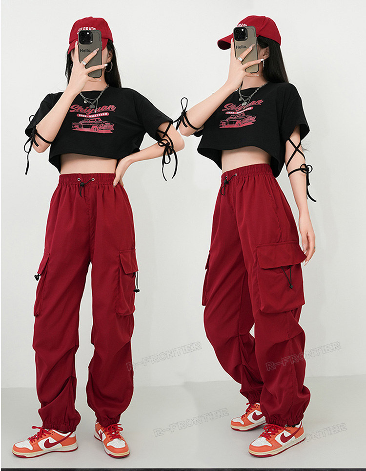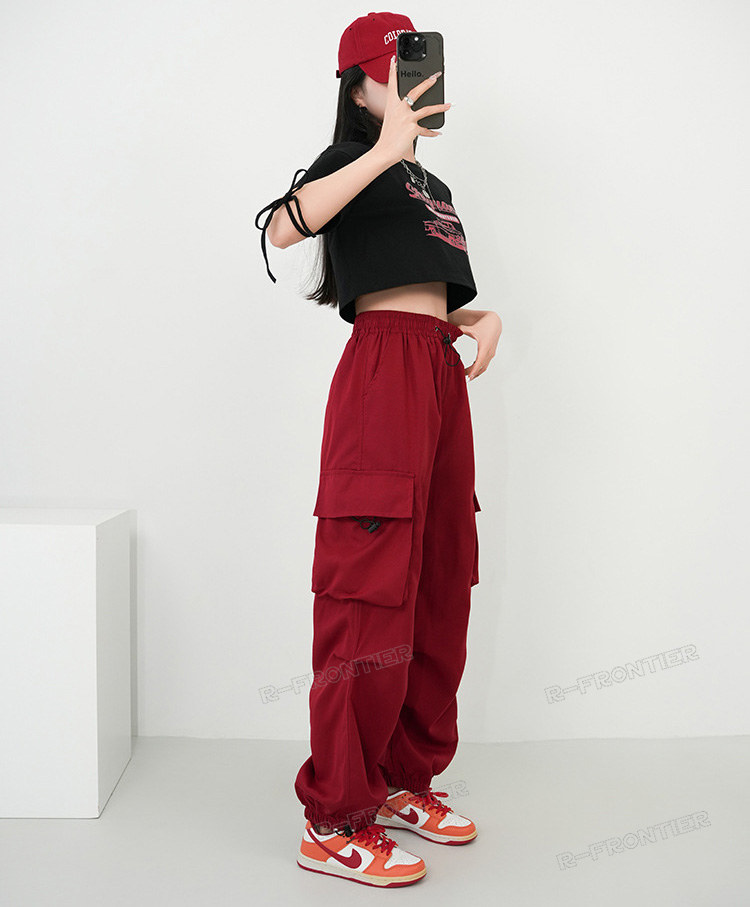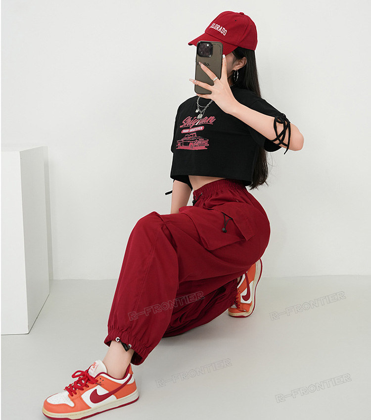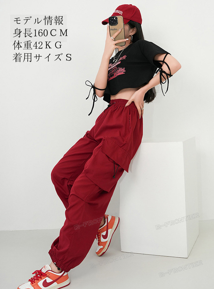 赤 カーゴパンツ へそ出し レディース