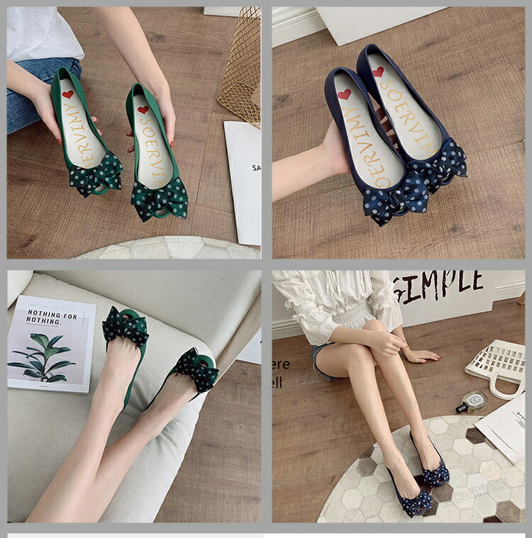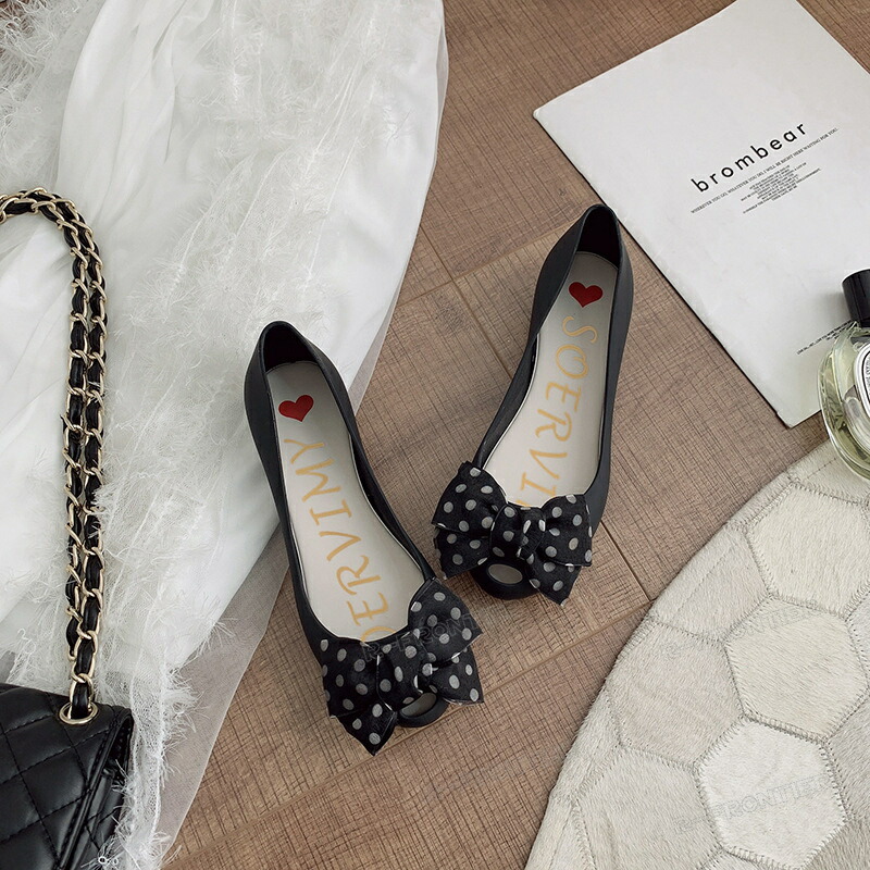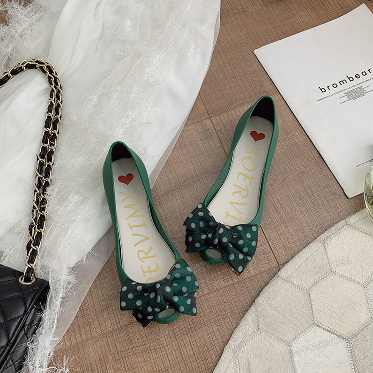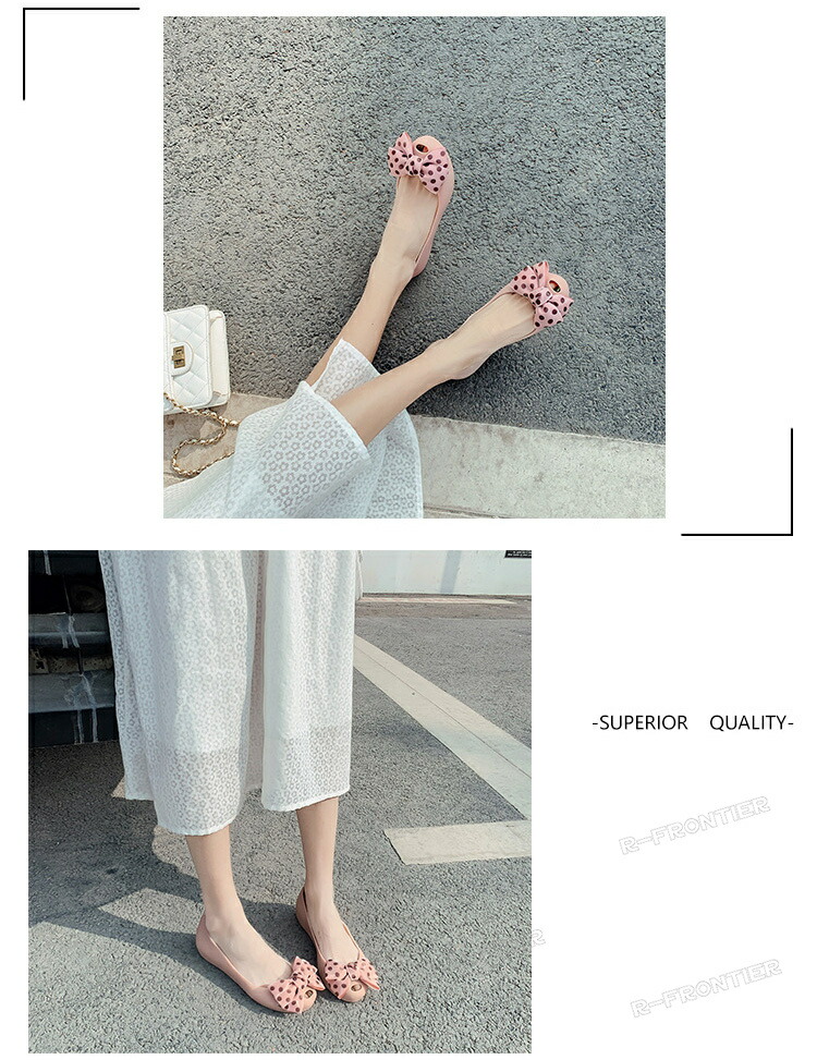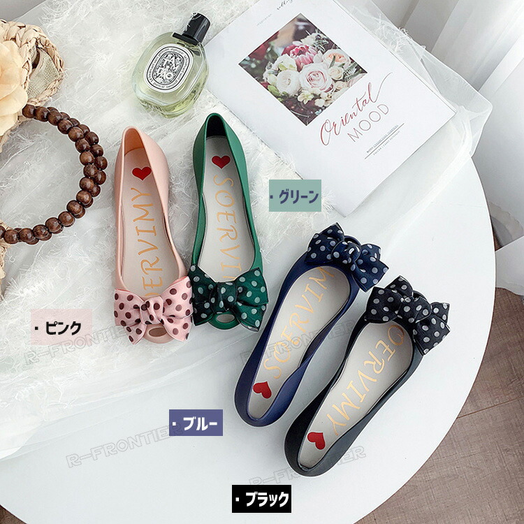 ラバーサンダル ラバーパンプス 楽チン レインパンプス パンプス レディース 痛くない フラット シューズ ドット柄リボン 雨 梅雨 ラバー 防水 フラットシューズ 軽量 歩きやすい