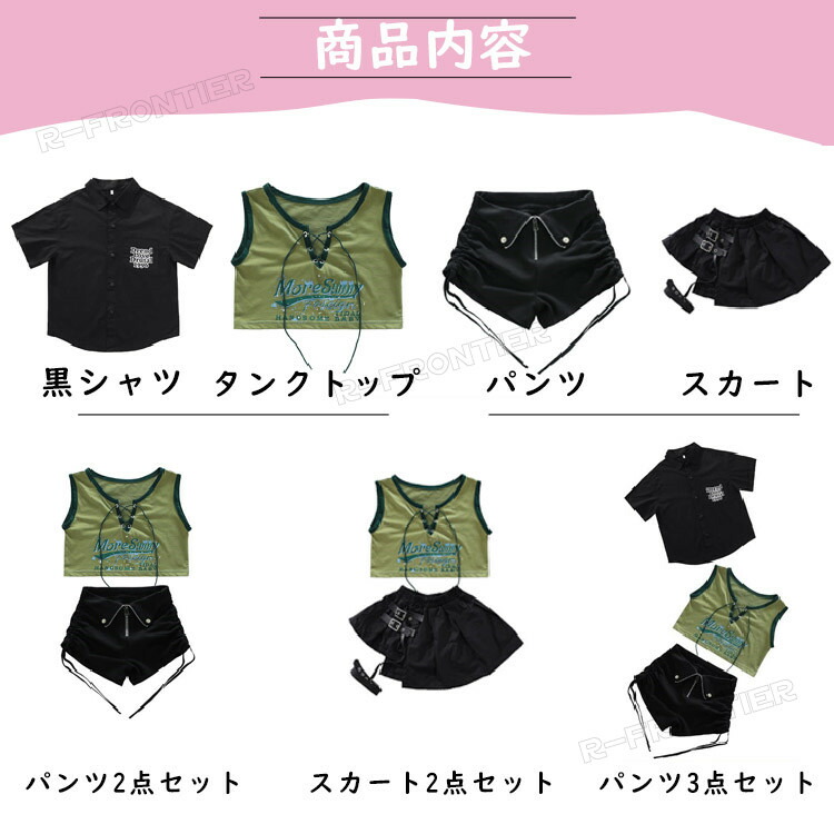 horizontal-key: 黒シャツのみ タンクトップのみ パンツのみ スカートのみ パンツ2点セット スカート2点セット パンツ3点セット