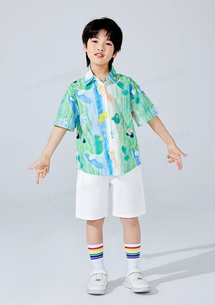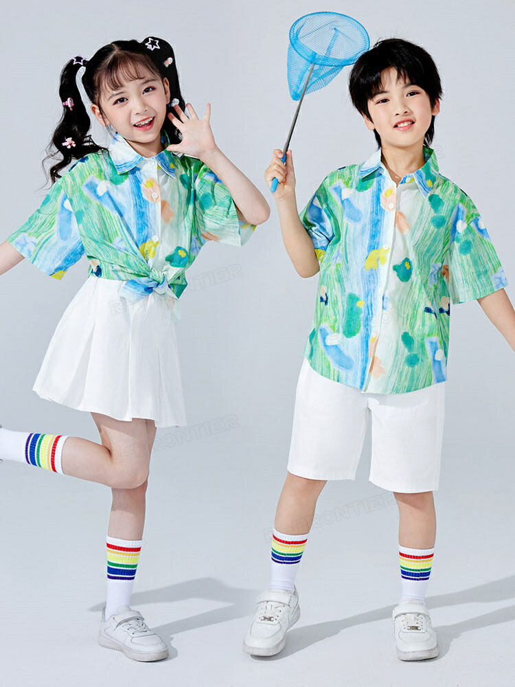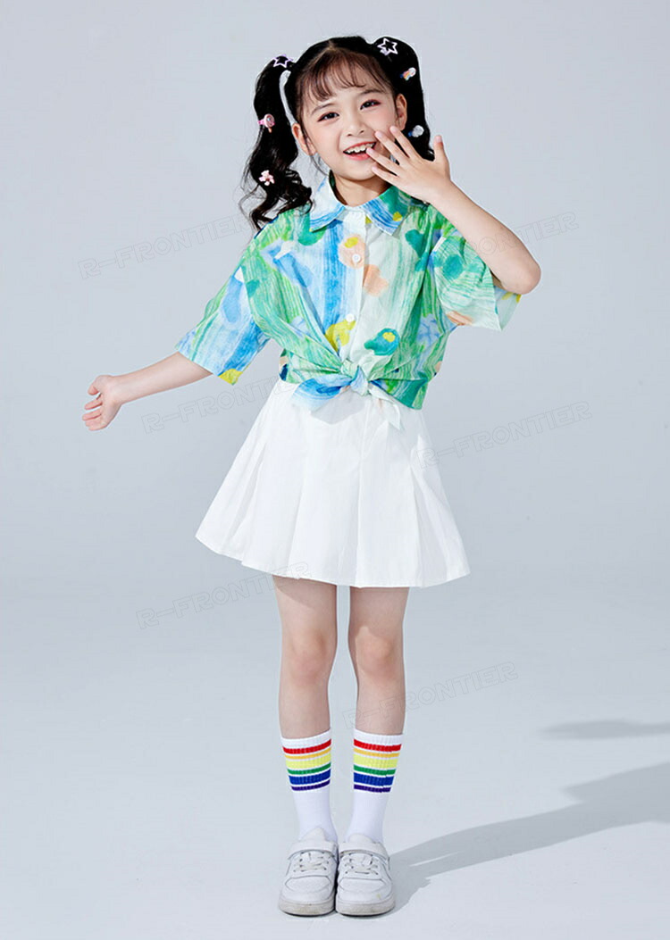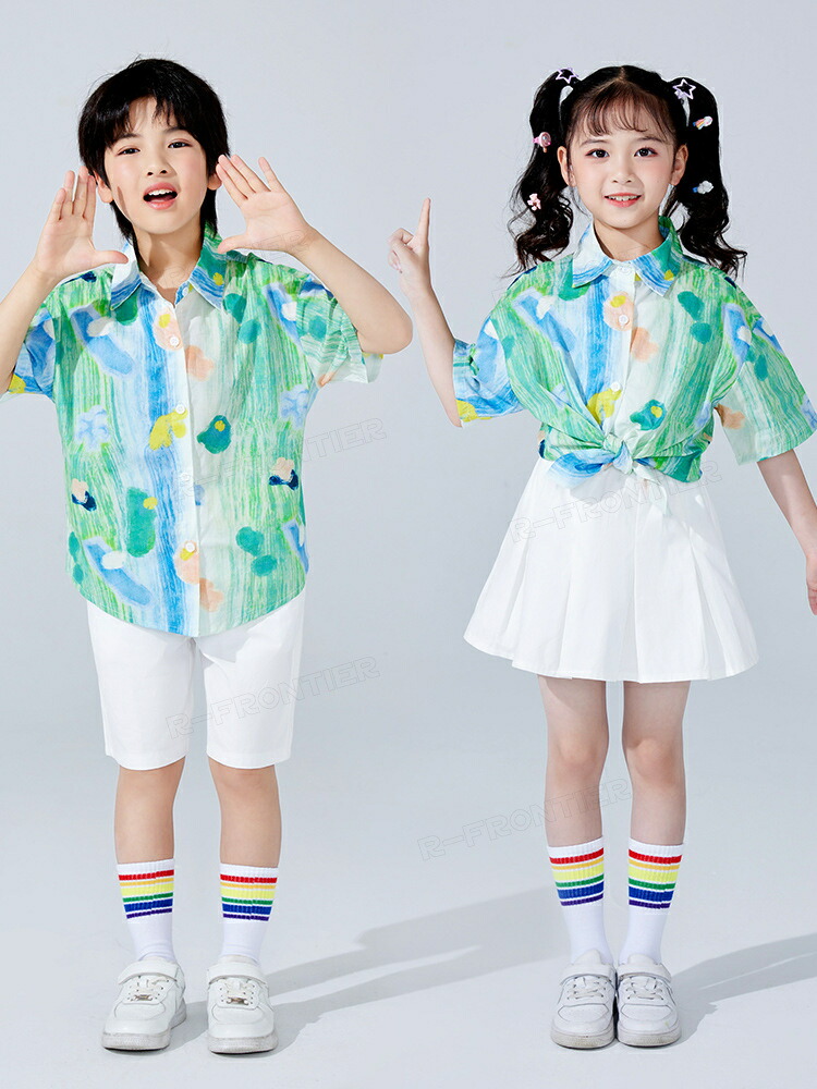 ダンス衣装 キッズ ユニセックス 柄シャツ 白パンツ スカート トップス HIPHOP ユニセックス ステージ衣装 子供 練習着 韓国 発表会 人気 おしゃれ 韓国 かっこいい 派手 110-180c