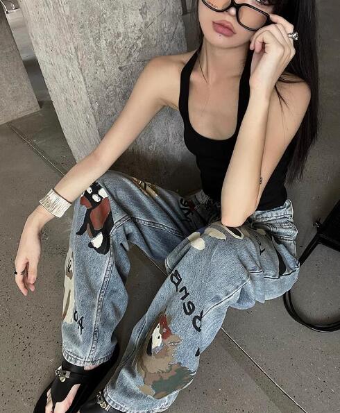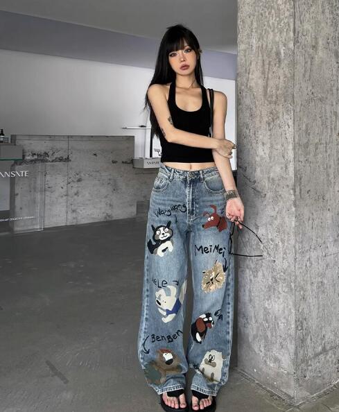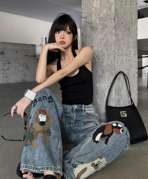 デニムパンツ ビジュー付き